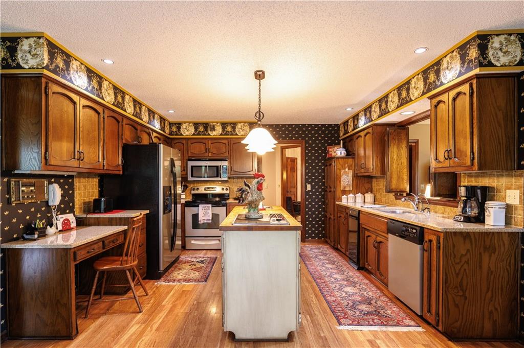 Welcome to 5611 NW Oak Ridge Court, gracefully situated on a quiet cul-de-sac in the sought after community of Platte Woods, no KC EARNINGS TAX This one-owner, custom-designed home offers thoughtfully curated living space—blending timeless craftsmanship with exceptional comfort and scale. Featuring 4 bedrooms and 3 full and 1/2 bathrooms, the home is anchored by a main-level primary suite, creating a private and convenient retreat. Expansive interiors showcase generously sized rooms, abundant natural light, and rich ash wood details, complemented by custom built-ins and spacious walk-in closets—all contributing to a warm yet refined aesthetic. Custom window treatments throughout enhance both style and privacy, adding a finished, high-end touch to every space. Designed for both everyday living and elevated entertaining, the home features a wet bar and full bar setup, with bar stools included, creating a seamless hosting experience. The finished lower level is an entertainer’s dream—complete with a pool table that stays with the home, offering a true turnkey recreation space. Comfort is maximized with zoned HVAC systems, ensuring efficient, customized climate control throughout. Car enthusiasts and hobbyists will appreciate the three oversized garages, offering ample room for vehicles, storage, or workspace. Following a recent hail storm, a new roof, screens, and exterior paint will be completed prior to closing, further enhancing the home’s value and curb appeal. Offering this one owner home in one of Platte Woods’ most sought-after locations, this property is thoughtfully positioned to deliver exceptional value for a custom property of this caliber. Opportunities like this—where quality materials, custom finishes, space, and location align—are increasingly rare at this price point.