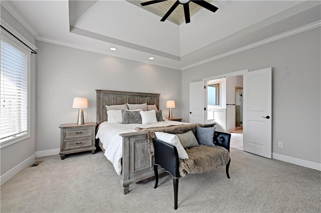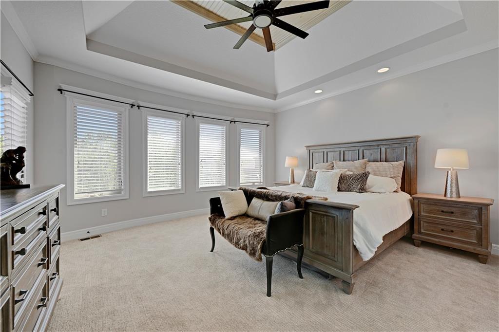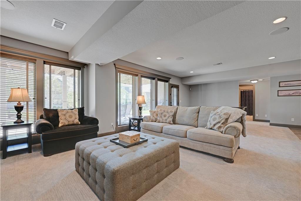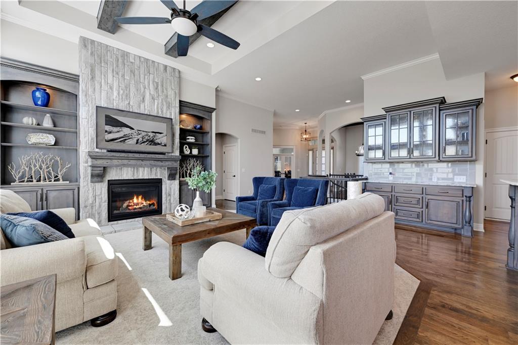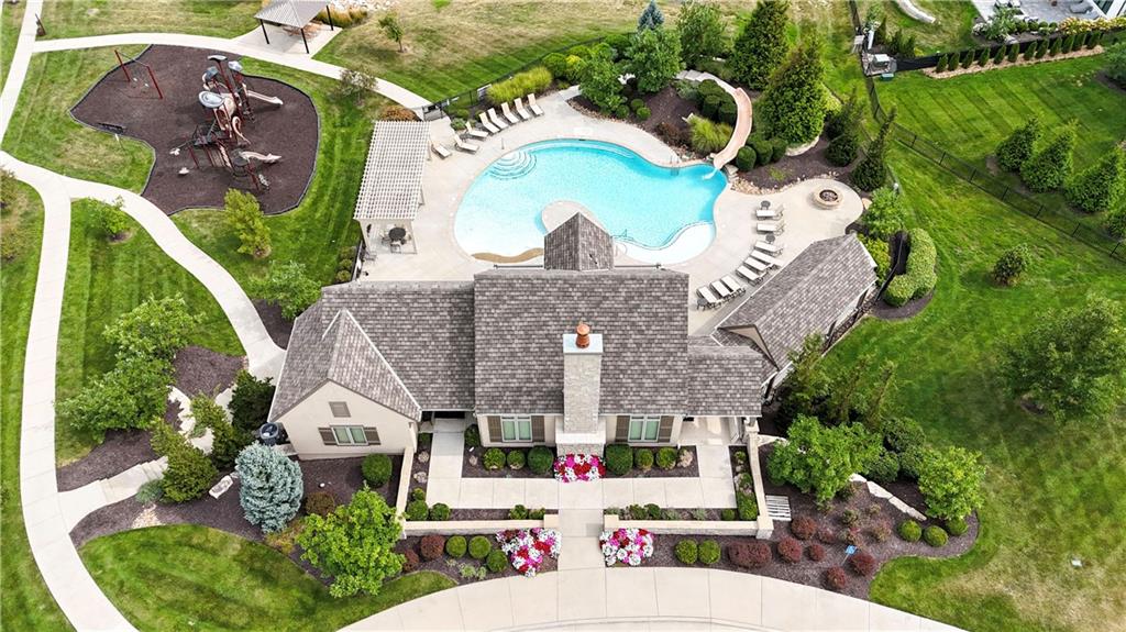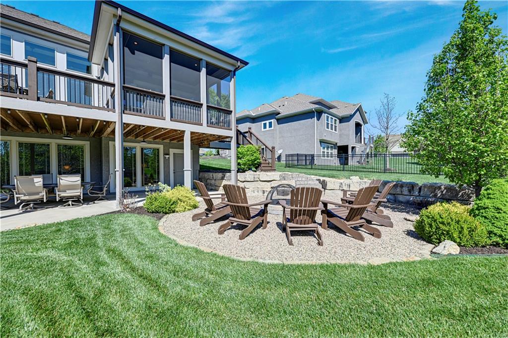 Experience refined living in this impeccably maintained reverse 1.5-story residence, showcasing exceptional curb appeal, lush landscaping, and a striking presence with a tall front door, covered porch, and elegant stone columns. Ideally positioned with a west-facing front for quicker winter snow melt and an east-facing backyard that offers cool, shaded evenings. The thoughtfully designed main level features a luxurious primary suite and a versatile second bedroom or office with access to a full bath. Entertain in style in the formal dining room or enjoy casual meals in the bright breakfast area. The gourmet island kitchen is a chef’s dream, complete with a hidden walk-in pantry that blends seamlessly into the space. Step outside to enjoy a screened porch and three separate decks, creating multiple outdoor living areas perfect for relaxing or hosting. The private backyard retreat includes a dedicated fire pit area, offering both comfort and seclusion. A dramatic curved staircase leads to the finished lower level, featuring an expansive rec/family room with a bar and a state-of-the-art in-ceiling 5-speaker surround sound system, delivering an exceptional movie and entertainment experience. The lower level also includes two additional bedrooms, 1 full and 1 half bath. A bonus room under the suspended garage provides flexible space for a gym, hobby room, or extra storage. Additional highlights include a suspended garage, full epoxy garage floor with built-in cabinets (included), and a convenient laundry/mud room off the garage entrance. Residents enjoy premier community amenities, including a clubhouse with kitchen and fireplace, swimming pool, play area, exercise room, fire pit, BBQ and picnic areas, along with scenic lakes offering fishing for residents.