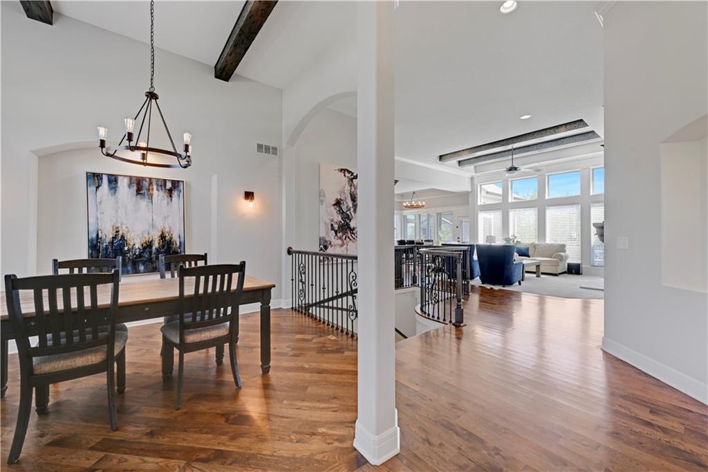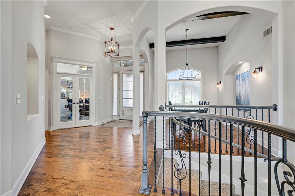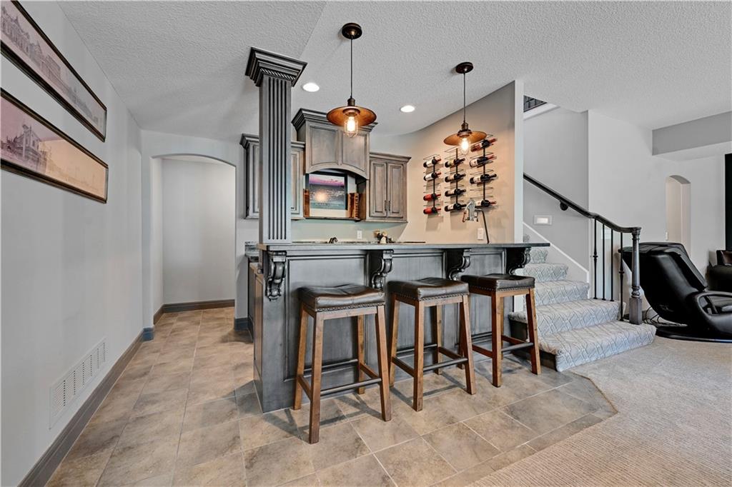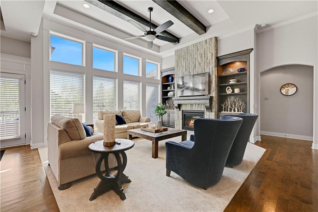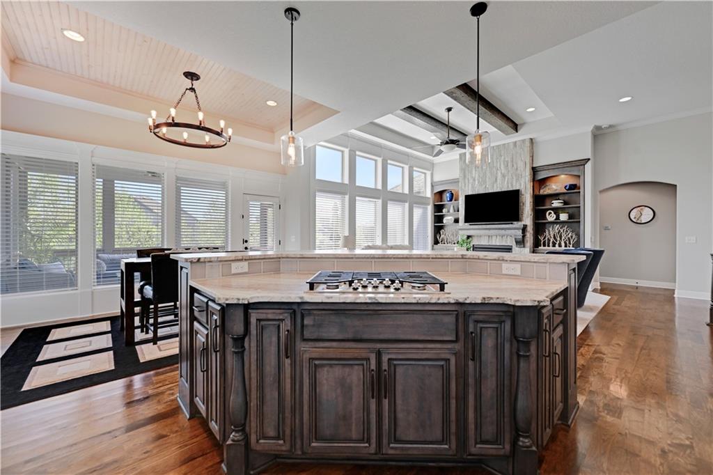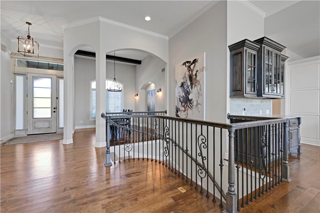 Experience refined living in this impeccably maintained reverse 1.5-story residence, showcasing exceptional curb appeal, lush landscaping, and a striking presence with a tall front door, covered porch, and elegant stone columns. Ideally positioned with a west-facing front for quicker winter snow melt and an east-facing backyard that offers cool, shaded evenings. The thoughtfully designed main level features a luxurious primary suite and a versatile second bedroom or office with access to a full bath. Entertain in style in the formal dining room or enjoy casual meals in the bright breakfast area. The gourmet island kitchen is a chef’s dream, complete with a hidden walk-in pantry that blends seamlessly into the space. Step outside to enjoy a screened porch and three separate decks, creating multiple outdoor living areas perfect for relaxing or hosting. The private backyard retreat includes a dedicated fire pit area, offering both comfort and seclusion. A dramatic curved staircase leads to the finished lower level, featuring an expansive rec/family room with a bar and a state-of-the-art in-ceiling 5-speaker surround sound system, delivering an exceptional movie and entertainment experience. The lower level also includes two additional bedrooms, 1 full and 1 half bath. A bonus room under the suspended garage provides flexible space for a gym, hobby room, or extra storage. Additional highlights include a suspended garage, full epoxy garage floor with built-in cabinets (included), and a convenient laundry/mud room off the garage entrance. Residents enjoy premier community amenities, including a clubhouse with kitchen and fireplace, swimming pool, play area, exercise room, fire pit, BBQ and picnic areas, along with scenic lakes offering fishing for residents.