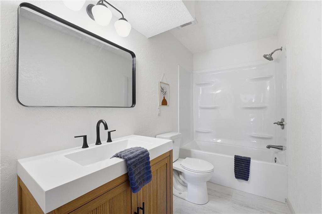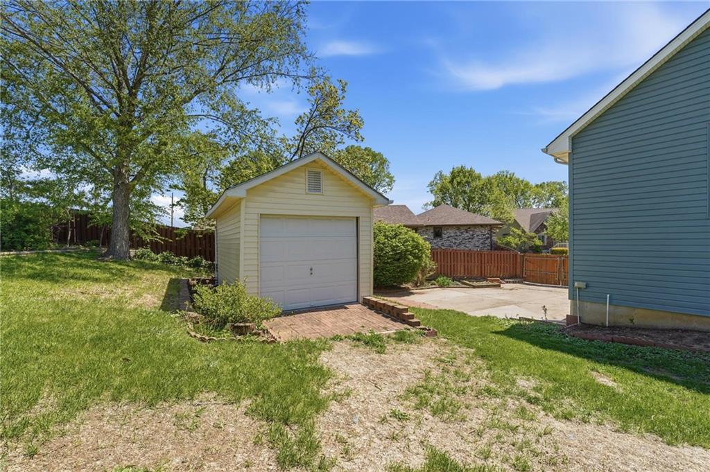 Luxury living meets space and functionality in this stunning 4 bed, 3 bath home offering 2,677 sq ft in a prime Blue Springs location. The oversized primary suite is a true retreat—featuring a HUGE bedroom, a spa-like en-suite bath with soaking tub, tiled shower, and separate his & hers closets. The kitchen showcases beautiful quartz countertops and a clean, modern design that flows seamlessly for everyday living and entertaining. Step out back to a nice deck—perfect for relaxing or hosting guests. Plenty of room for all your vehicles and toys! Includes a 2-car garage plus a third garage on the side of the home. The oversized driveway provides ample space, including room for an RV with hookup already in place. A bonus detached garage/shop in the backyard is ideal for tools, storage, or hobbies. Move-in ready with upscale finishes, generous space, and thoughtful features throughout this home offers the perfect blend of comfort and luxury.