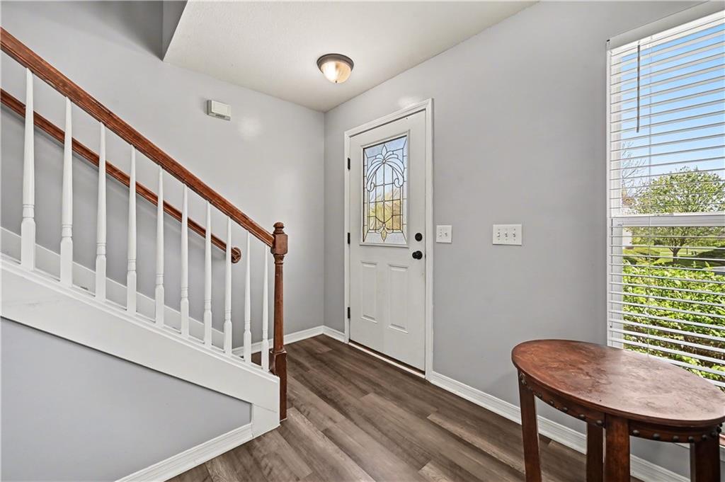 Step inside this charming home and immediately notice the new flooring and fresh paint throughout. The spacious living room is filled with natural light and features a convenient coat closet for added storage. Just steps away, the kitchen offers stainless steel appliances, crisp white cabinetry, and a sliding glass door that leads to the back patio. With plenty of space to cook and gather, this kitchen is both functional and inviting. You will also find easy access to the one car garage on this level, along with a half bath for guests. Upstairs, there are two bedrooms, including a primary suite with its own private bathroom and walk in closet. The second bedroom is located near an additional full bathroom, and a versatile bonus space in the hallway provides the perfect spot for a small lounge, office, or reading nook. The basement includes a dedicated exercise room, while the remaining unfinished space offers plenty of storage or room to expand. Enjoy a low-maintenance lifestyle with no exterior upkeep or mowing, giving you more time to focus on what matters most.