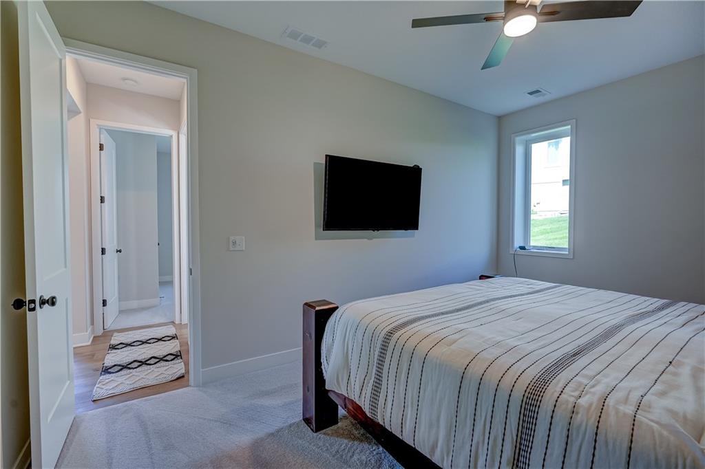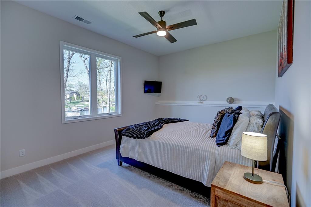 Stunning reverse 1.5 story lakefront home tucked away on a private cul-de-sac lot with awesome water views and direct lake access. This newer 4-bedroom, 3.5-bath home offers an open and spacious layout designed for both everyday living and entertaining. The kitchen is beautiful with custom cabinets, quartz countertops, & Stainless appliances. Enjoy private lake views from the main living areas and step out onto the covered deck to relax or take in the scenery. The finished walkout basement provides additional living space, bedrooms, and easy access to the backyard oasis. Beautifully maintained with extensive landscaping, irrigation system, and a sidewalk leading to your private dock for effortless days on the water. House is located in a cove so perfect for fishing, swimming, and floating with no boat traffic. A rare opportunity to own a move-in ready waterfront home with luxury features, privacy, and incredible outdoor living.
