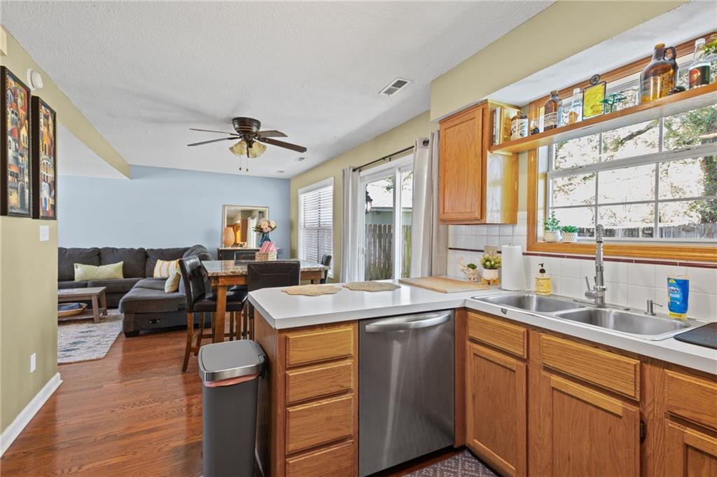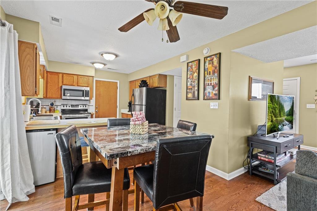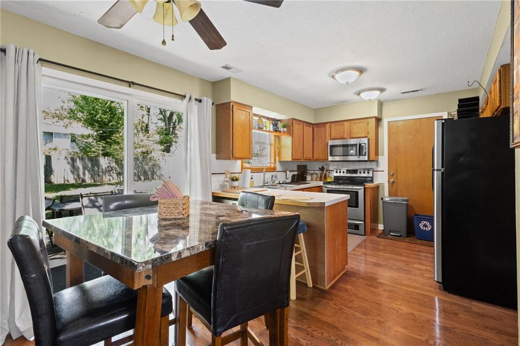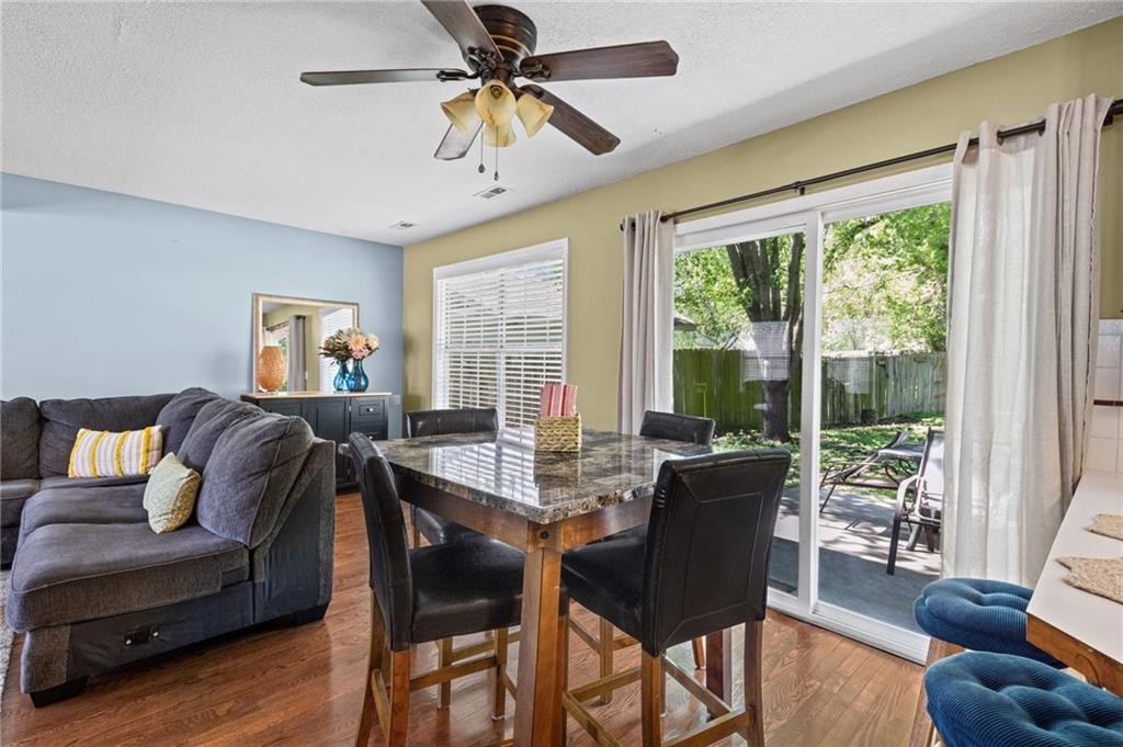 Welcome home to this charming and well-maintained home offering a warm, inviting feel throughout! Step inside to a cozy living room featuring a beautiful brick fireplace—perfect for relaxing evenings—along with great natural light and comfortable gathering space. The kitchen and dining area flow seamlessly together, creating an ideal setup for everyday living and entertaining. Enjoy ample cabinet space, functional layout, and easy access to the backyard through sliding glass doors—bringing the outdoors right in. Upstairs, you’ll find spacious bedrooms with neutral tones, ceiling fans, and plenty of natural light. The home also offers flexible space perfect for a home office, reading room, or hobby area. Outside, the large fully fenced backyard provides plenty of room to play, garden, or host gatherings, complete with a patio area and additional storage shed. The attached garage offers extra space for storage or a workshop setup. With its comfortable layout, inviting character, and great indoor-outdoor living, this home is ready for its next owner to move right in and enjoy!