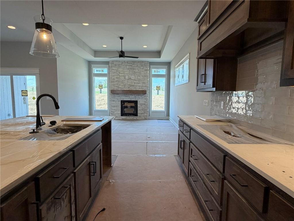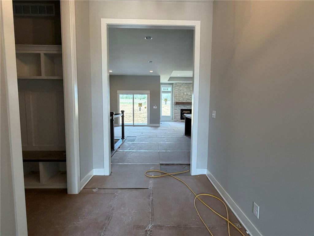 Ready for an end of June 2026 close! Presenting The Cambridge, the newest Reverse 1.5-story floor plan by award-winning builder Inspired Homes, nestled in the sought-after Pryor Ridge community. This thoughtfully crafted 4-bedroom, 3-bath residence blends upscale design with everyday comfort and functionality. A bright, open-concept layout welcomes you with a spacious entry, striking staircase, 10-foot ceilings, and expansive windows that flood the home with natural light. The gourmet kitchen is designed to impress, featuring quartz countertops, a designer tile backsplash, soft-close cabinetry, a large island, and a walk-in pantry—ideal for hosting and daily living. The great room showcases a beautiful stone fireplace and flows seamlessly to a covered patio and level backyard, perfect for enjoying outdoor spaces. Durable and stylish RevWood flooring extends throughout the main living areas. Retreat to the main-level primary suite, complete with a spa-inspired bath offering a 6-foot soaking tub, walk-in shower, dual vanities, and a walk-in closet with convenient access to the laundry room. The finished lower level expands your living space with a recreation room, two additional bedrooms, a full bath, and ample storage. Conveniently located just minutes from Downtown Lee’s Summit, as well as nearby lakes, trails, shopping, dining, and highly rated schools. Enjoy added peace of mind with new construction backed by a 2-10 Home Warranty, including 10-year structural, 2-year mechanical, and 1-year workmanship coverage. Final touches are underway—this home is nearing completion in its Quality Assurance stage.