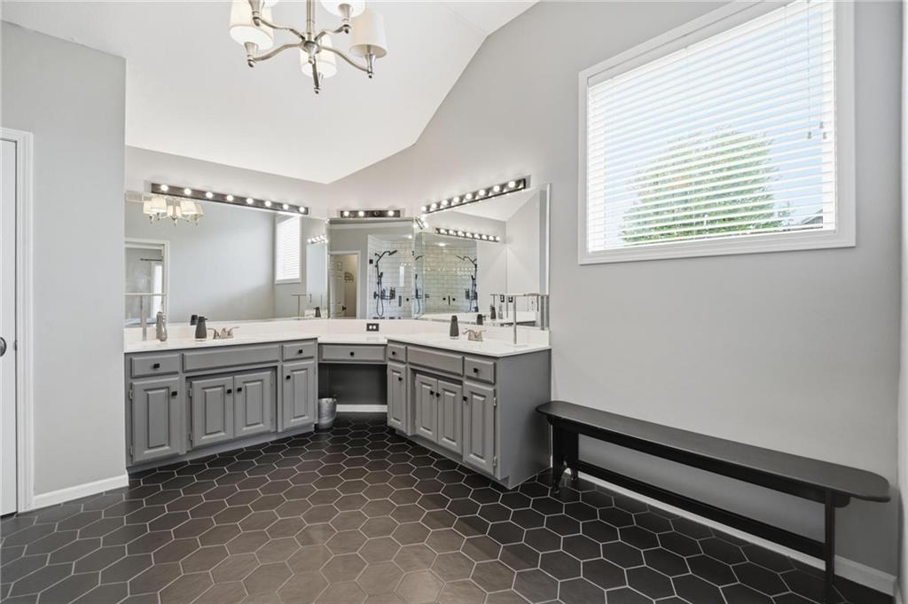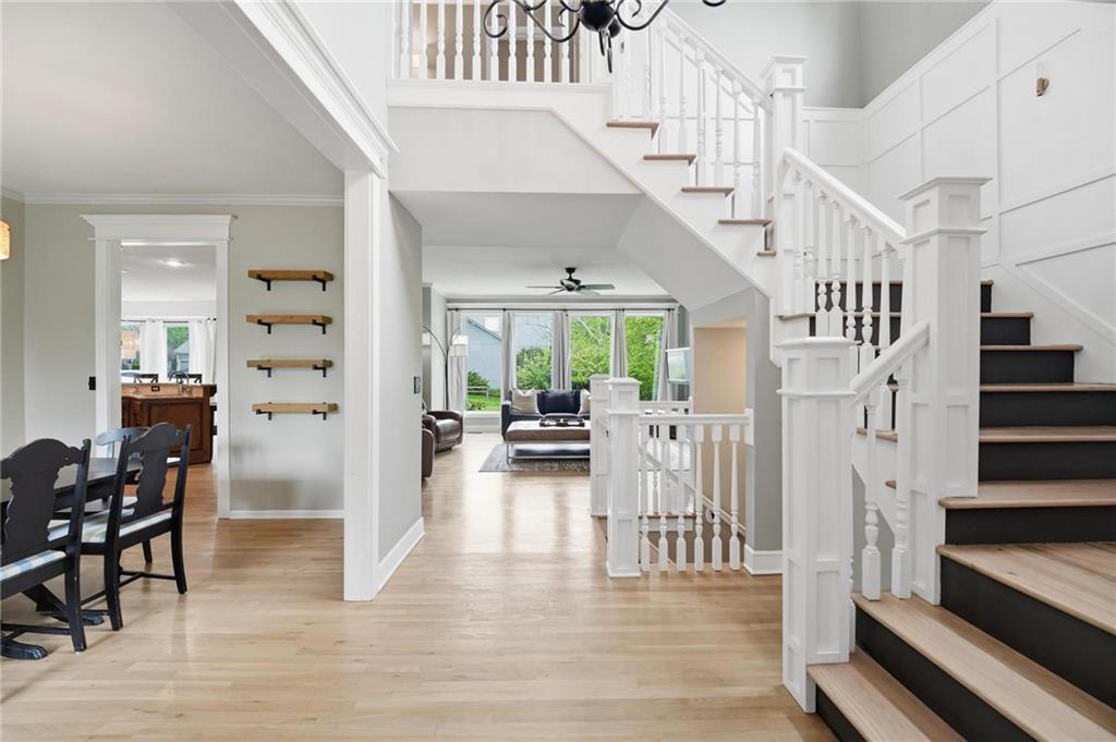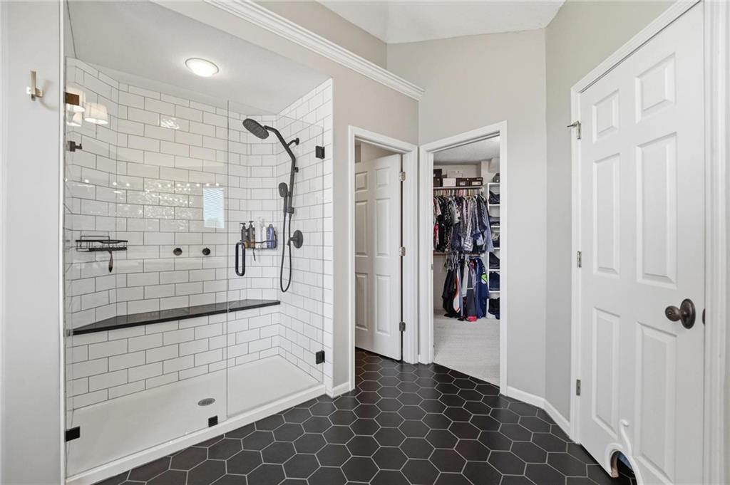 Step inside and you’ll love how easily the main level flows—from the open foyer to a private front office, into the living and dining spaces, all tied together with gorgeous hardwood floors. The kitchen is truly the heart of the home, with an angled island, granite countertops, shaker cabinets, stainless appliances, and charming built-ins. Whether you’re hosting or just enjoying a quiet night in, the two stone fireplaces (gas and woodburning) add the perfect cozy touch. Just off the kitchen is the kind of everyday functionality everyone wants—a mudroom, laundry with sink, great storage, and a stylish half bath. Upstairs, you’ll find four spacious bedrooms. The primary suite is a true retreat with a sitting area, vaulted ceiling, and a spa-like bath featuring a large shower, double vanities, and an oversized walk-in closet with natural light. Secondary bedrooms all offer walk-in closets, ceiling fans, and beautifully updated bathrooms, including one private en-suite and a fully renovated shared bath. One even includes a built-in desk—perfect for work or homework. And then… the lower level. This is where the fun really happens. Glass French doors create a private den with a bonus closet, plus there’s a flex room (gym, craft space, guest room—you decide). The family room is spacious but still feels cozy, complete with a game closet. A fully remodeled bath adds even more convenience, and the showstopper. An AMAZING movie theater space that can be closed off for the full experience. You’ll also find a huge, well-lit storage area with extensive shelving (because we all need that space). Big-ticket updates are already taken care of—new HVAC in 2023 and a new roof in 2024. All of this, plus award-winning schools nearby. It’s the kind of home that just makes sense the second you walk through the door.