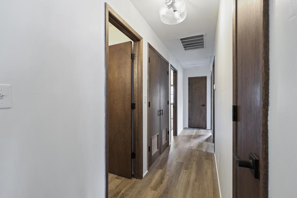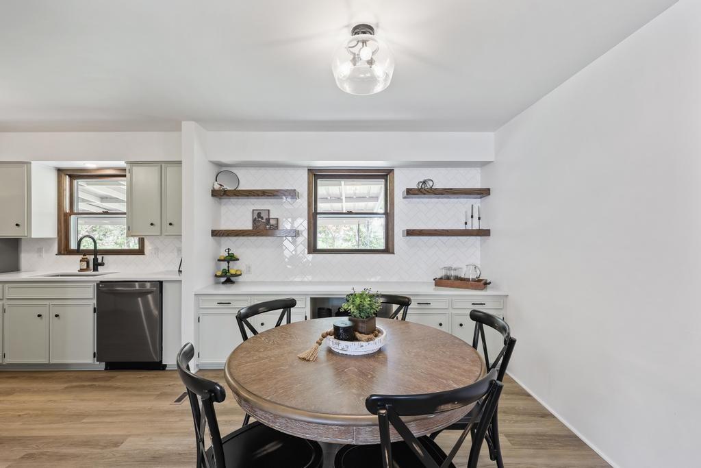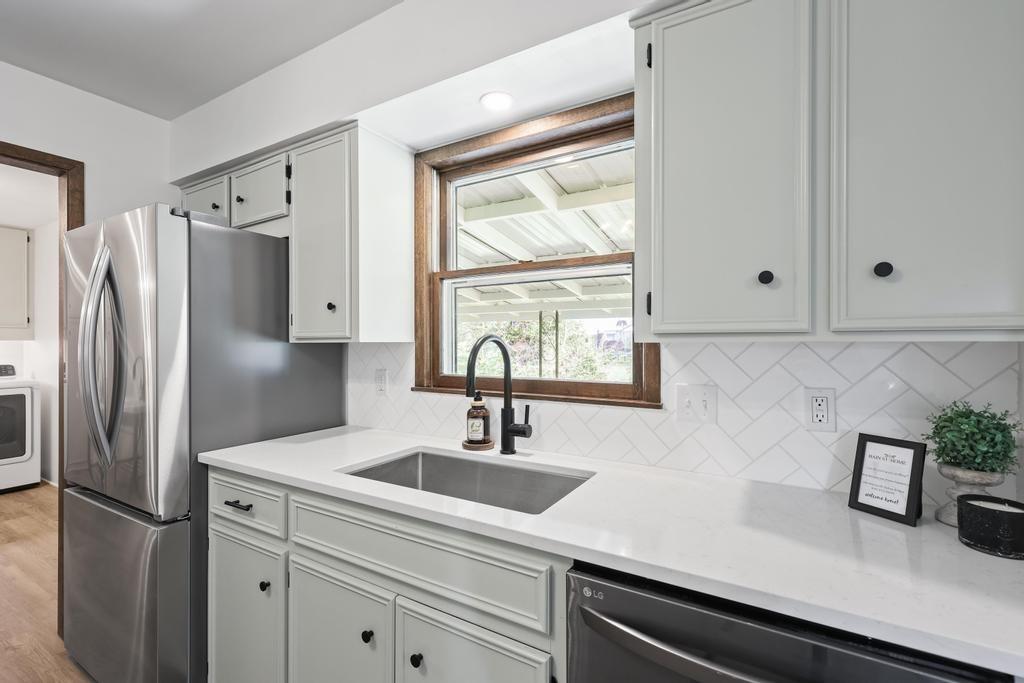 Welcome home to this beautiful fully remodeled 3-bedroom, 2-bath ranch that perfectly blends modern updates with timeless comfort! From the moment you arrive, you’ll appreciate the curb appeal, fresh exterior paint, and the brand new black Class 4 impact-resistant roof that fits perfectly into the striking color scheme and gives you peace of mind. Step inside to discover an aesthetic that perfectly blends creamy white paint, warm wood tones, and matte black fixtures for a coordinated and classy look that accentuates any style. The bright, inviting, and open interior features fresh paint and new LVP flooring throughout. Large windows and a wood burning fireplace are found in the spacious living room, which flows seamlessly to the stunning kitchen and dining area — undoubtedly the heart of the home. Showcasing gorgeous quartz countertops, white herringbone backsplash, abundant cabinetry, and stainless steel appliances (including a gas range!) — this is a kitchen that is as functional as it is pretty! The roomy primary bedroom boasts a walk-in closet and en suite bath, complete with a walk-in shower and herringbone tile details to elevate the look. Two additional bedrooms, and another full bath are found down the same hallway, along with plenty of storage! The attached 2-car garage conveniently connects to the home through the laundry and mudroom that is both functional and fashionable - because it shouldn’t be an exception to the way the rest of the home looks! Outside, you’ll love the large flat lot—ideal for entertaining, gardening, or simply relaxing under the large covered patio overlooking the backyard. This move-in ready home offers style, quality, and convenience all in one. Don’t miss your chance to make it yours!