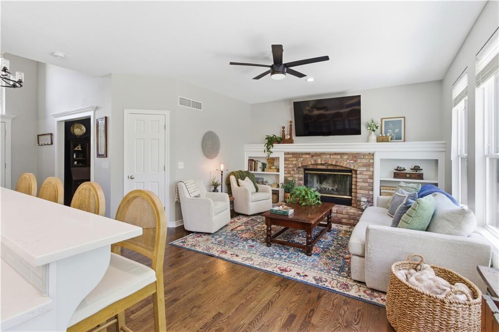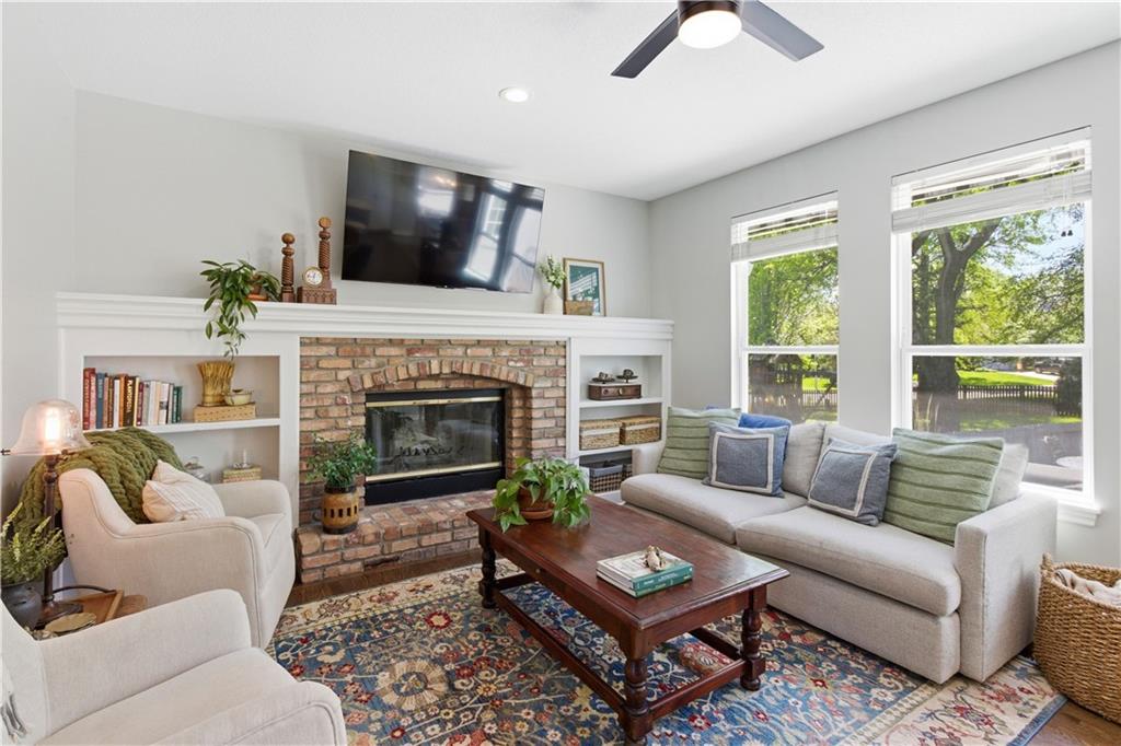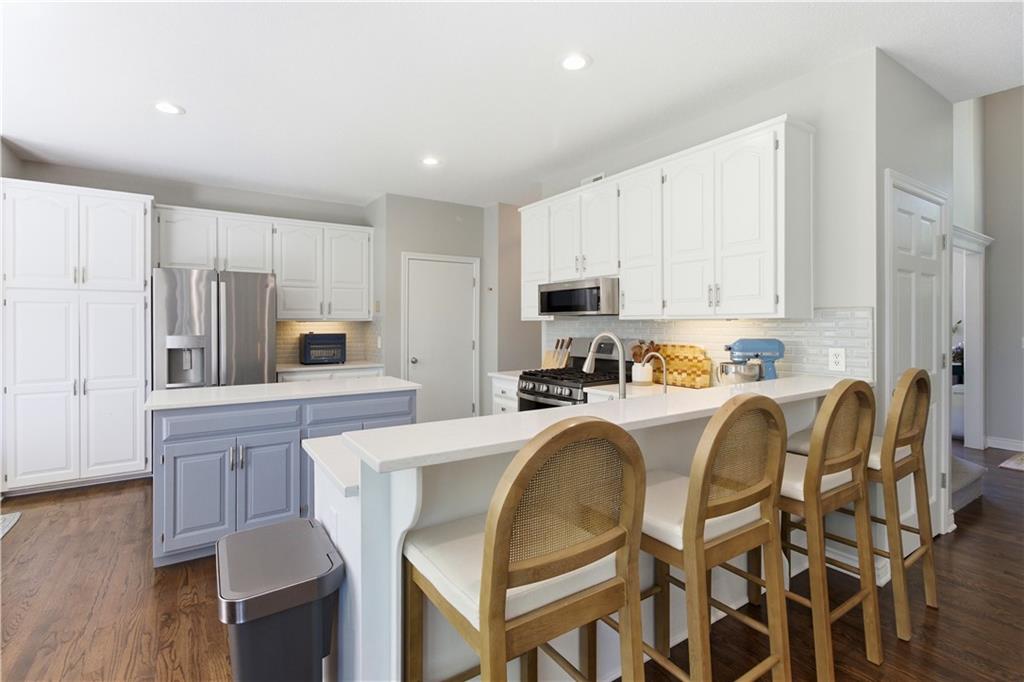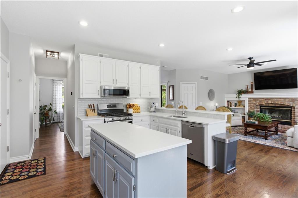 Meticulously maintained home offering exceptional curb appeal with updated landscaping and sprinkler system front and back. Cul-de-sac tucked inside the Eastbrooke subdivision. Inside, enjoy a formal living room with custom built-ins and a stunning fireplace, plus a versatile front flex room. The remodeled kitchen boasts white cabinetry, quartz countertops, designer tile backsplash, gas range, and spacious eat-in area flooded with natural light. SO much space in this kitchen, plenty of cabinets/counter space. Reverse osmosis water filter at kitchen sink. Smart home features include ring cameras, smart garage and thermostat. Beautiful wood floors flow throughout the main level. Half bath with beautiful tile! Upstairs, the spacious master suite features a luxurious bathroom with heated tile floors and impressive walk-in closets. Separate tub/shower and dual vanities. Secondary bedrooms are generously sized with updated bath. The finished lower level provides ample living space with a rec room, custom built-ins, study nook, and abundant storage including a battery backup sump pump. The expansive fenced backyard includes a spacious patio, vibrant landscaping, level yard space, and a custom workshop off the garage. Great for tool storage or wood shop. Neighborhood trails connect to the Indian Creek Trail system. This home is truly move-in ready and close to schools, shopping, dining and more!