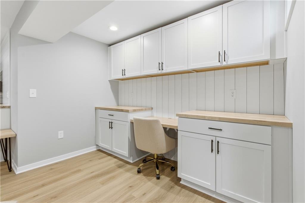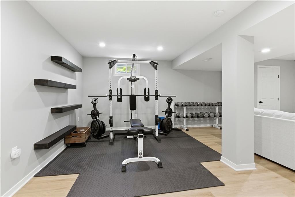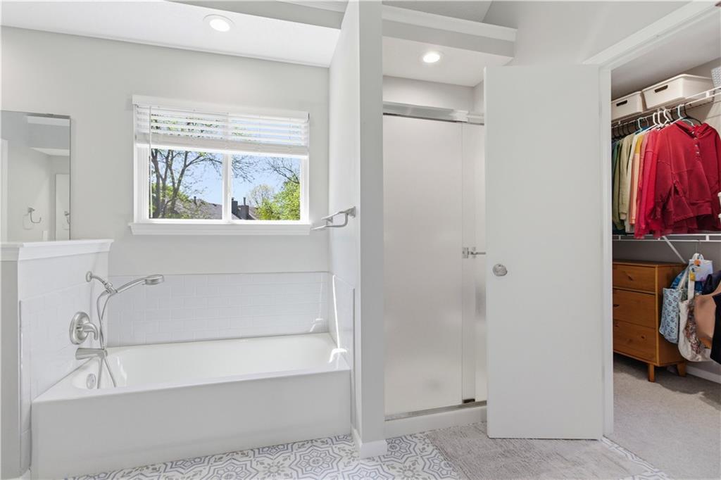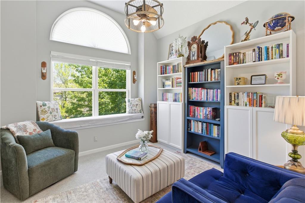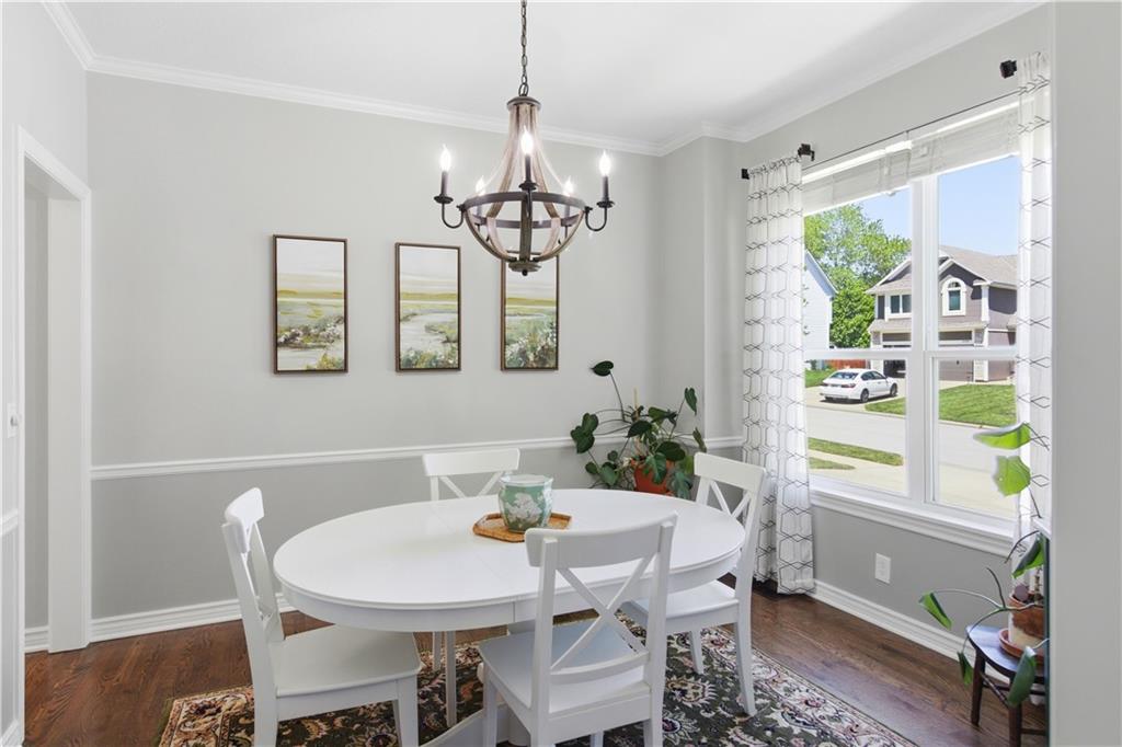Meticulously maintained home offering exceptional curb appeal with updated landscaping and sprinkler system front and back. Cul-de-sac tucked inside the Eastbrooke subdivision. Inside, enjoy a formal living room with custom built-ins and a stunning fireplace, plus a versatile front flex room. The remodeled kitchen boasts white cabinetry, quartz countertops, designer tile backsplash, gas range, and spacious eat-in area flooded with natural light. SO much space in this kitchen, plenty of cabinets/counter space. Reverse osmosis water filter at kitchen sink. Smart home features include ring cameras, smart garage and thermostat. Beautiful wood floors flow throughout the main level. Half bath with beautiful tile! Upstairs, the spacious master suite features a luxurious bathroom with heated tile floors and impressive walk-in closets. Separate tub/shower and dual vanities. Secondary bedrooms are generously sized with updated bath. The finished lower level provides ample living space with a rec room, custom built-ins, study nook, and abundant storage including a battery backup sump pump. The expansive fenced backyard includes a spacious patio, vibrant landscaping, level yard space, and a custom workshop off the garage. Great for tool storage or wood shop. Neighborhood trails connect to the Indian Creek Trail system. This home is truly move-in ready and close to schools, shopping, dining and more!