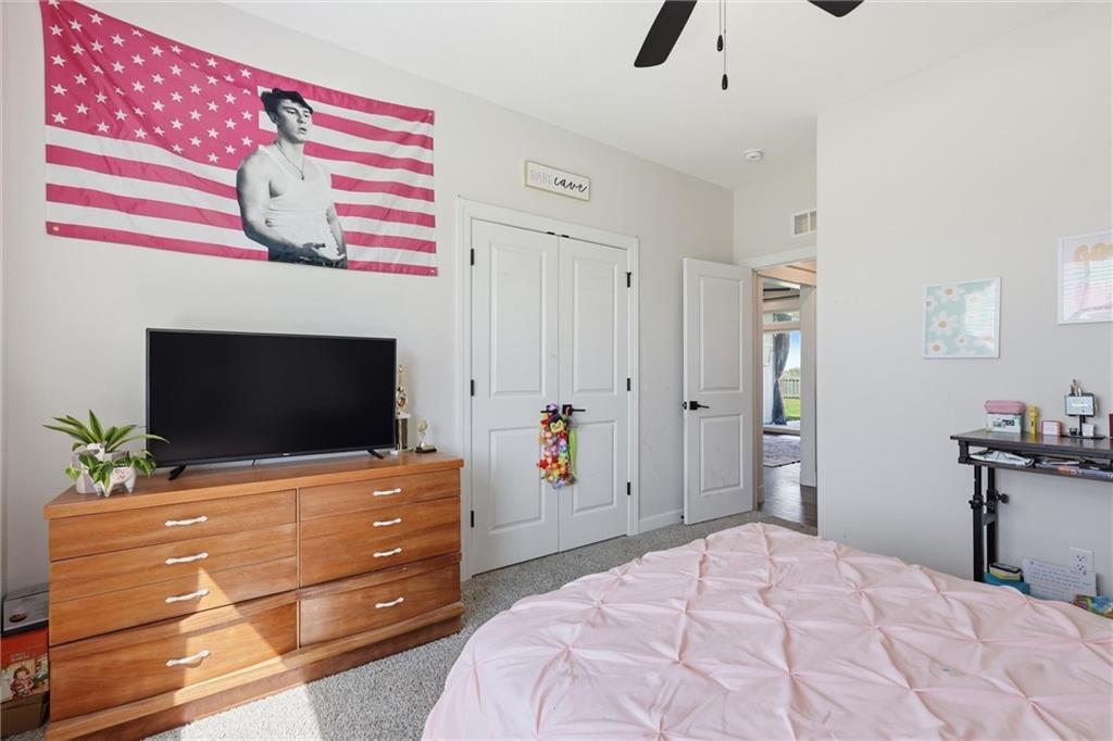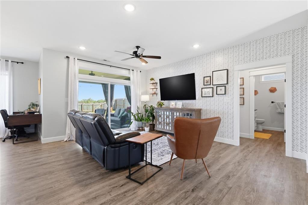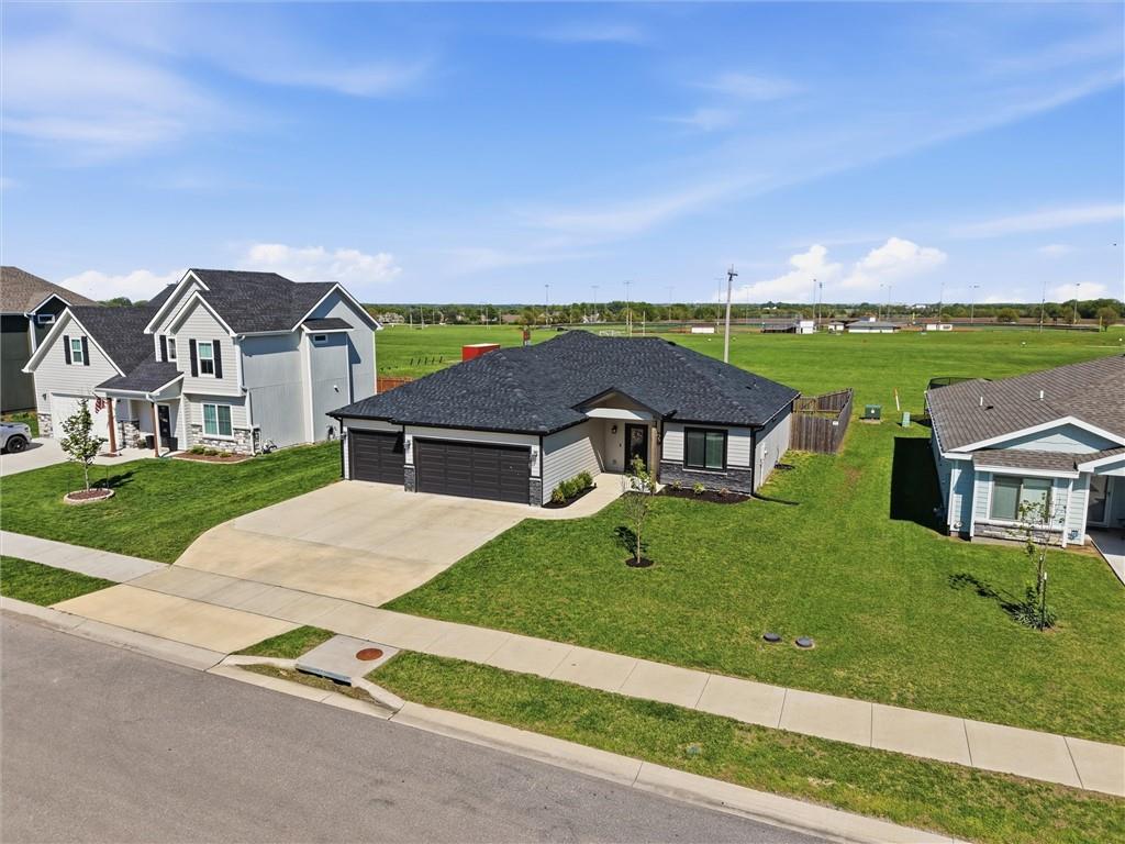 This nearly new home, built in 2023, is located in Shadow Ridge and sits directly behind Eudora Middle School. The open living space flows out to the covered back patio and fully fenced backyard. The kitchen features a large island, white quartz countertops, a walk-in pantry, and all kitchen appliances stay. The primary bedroom offers an en suite bath and a large closet, while the other two bedrooms are located on the opposite side of the home. Enjoy the benefits of a newer home with added personal touches throughout, such as fresh paint, wallpaper, and upgraded fixtures.