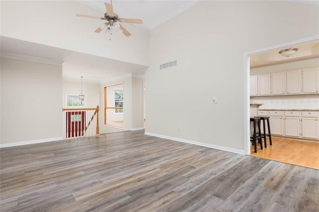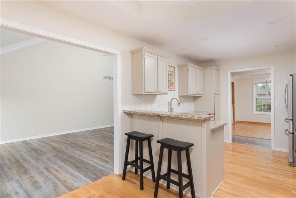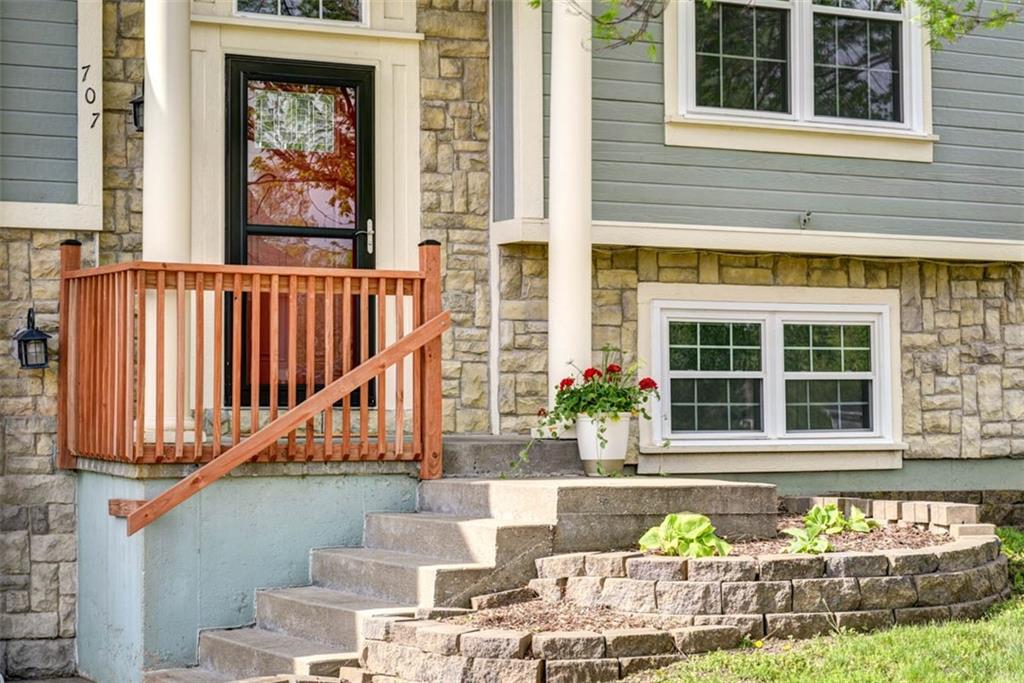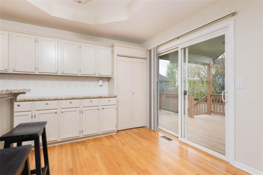 This beautiful house is rested, refreshed, and ready for its new owners!! Spacious and welcoming with great light, the living room greets you with soaring vaulted ceiling and a gas fireplace. The eat-in kitchen features wood floors, granite counters, and stainless appliances, with a walk-out door to your *covered* back deck and flat, *fenced* yard! If you need extra space for company, there's also a full dining room with a wood floor too! Primary bedroom is at one end of the hall for privacy, with NEW carpet and NEW paint - this room has a nicely updated en suite bathroom with tile floor, big tub and walk-in shower, granite double vanity, and a BIG walk-in closet. At the other end of the hall, you'll find two more bedrooms, each with ceiling fans, plus new carpet and paint! Downstairs, an easy care tiled family room walks out to patio/yard and has another gas fireplace. The basement also has that rare TRUE fourth bedroom! Big three car garage PLUS extra storage space here too for all your stuff. This house is conveniently located, with highly-rated schools, great walking nearby, easy access to shopping, dining and everything the community of Kearney has to offer!