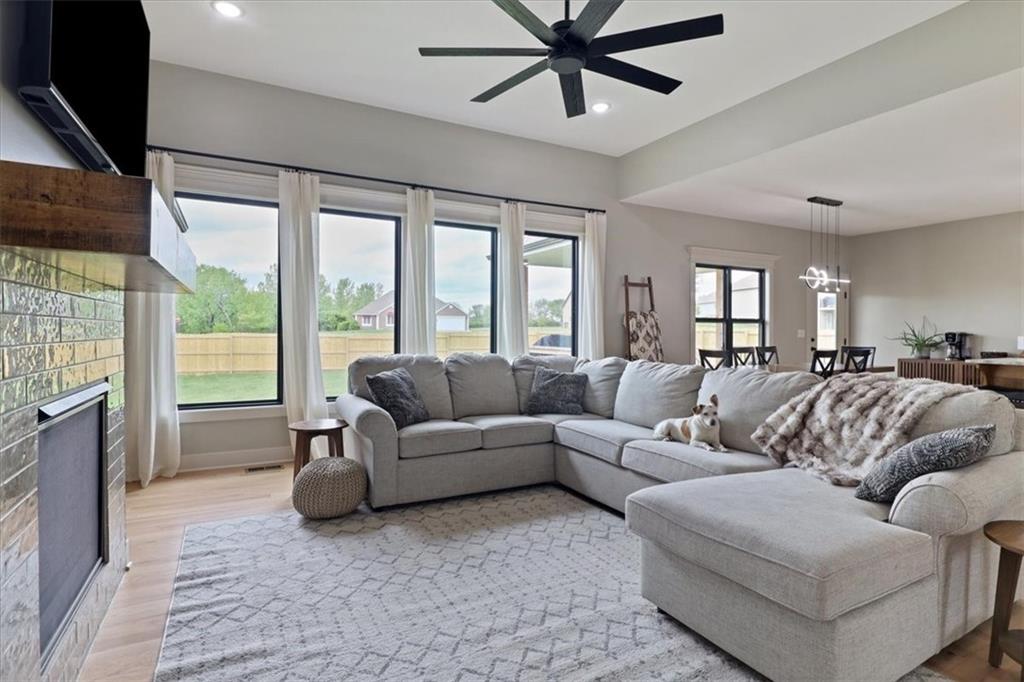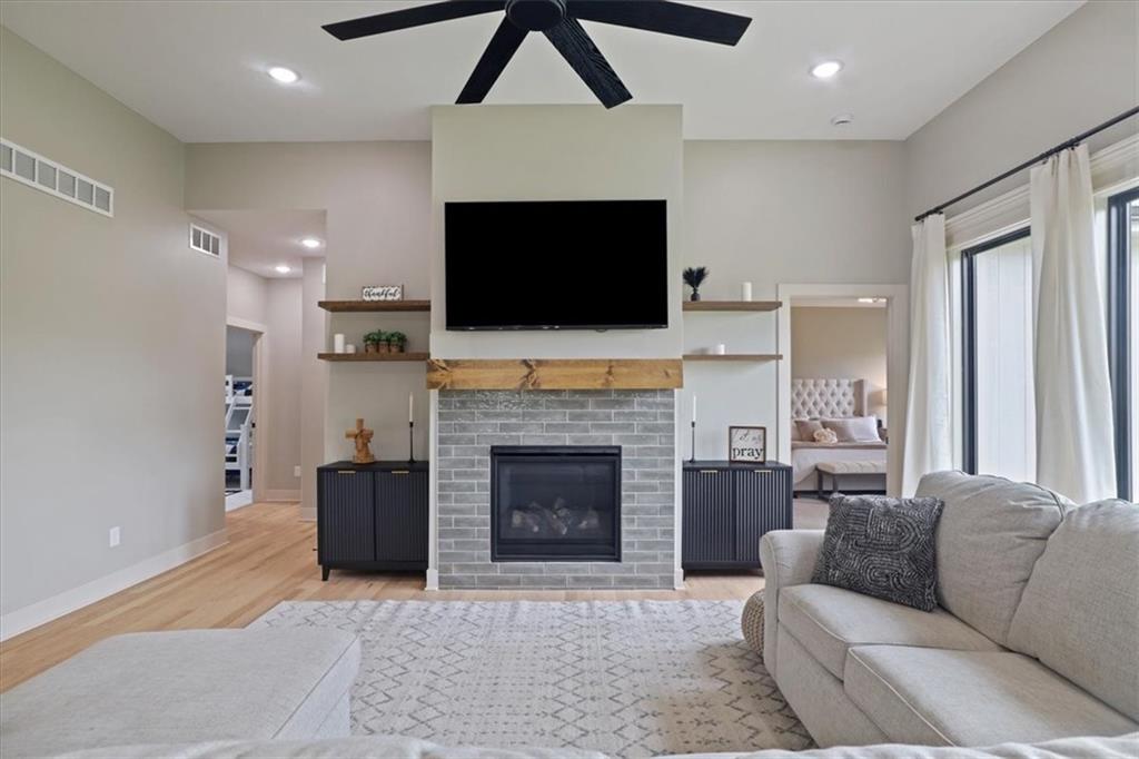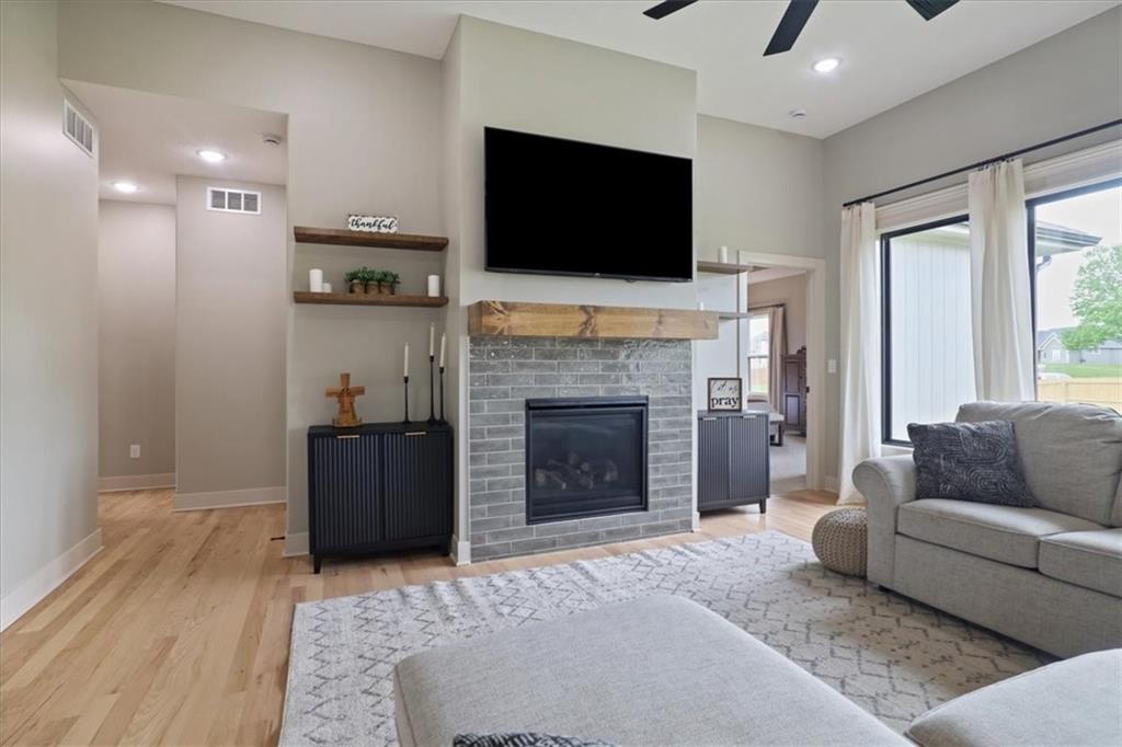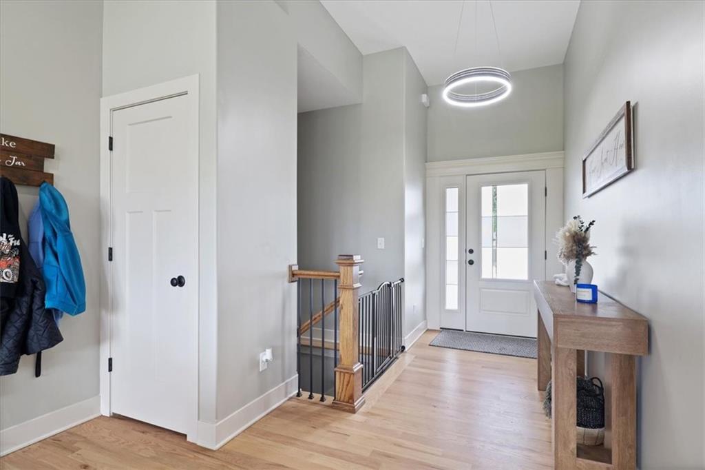 This beautifully designed reverse 1.5-story home offers space, style, and functionality in every detail. This 4-bedroom, 3-bathroom home features a finished lower level and an open layout ideal for both everyday living and entertaining. There is also a 5th non-conforming bedroom downstairs. Step inside to real hardwood floors and a bright, inviting great room with soaring vaulted ceilings and expansive windows that overlook peaceful green space. The spacious kitchen is a standout with ample cabinetry, modern finishes, and a large walk-in pantry—perfect for hosting or staying organized. The main level offers comfortable living with a well-designed primary suite, while the finished basement provides additional living space, bedrooms, and flexibility for guests or recreation. The home is also wheelchair accessible, featuring a convenient ramp in the garage for ease of entry. Since purchasing, thoughtful upgrades have been added, including a fully fenced backyard for privacy and convenience. The lower level has been enhanced with sheetrock to create a 5th non-conforming bedroom, offering even more usable space. A 220-volt outlet has also been installed for a tanning bed, providing versatility for specialized equipment or future needs. Located in The Vintage, residents enjoy access to a community pool and a charming paved walking trail that winds along a scenic creek through the wooded area behind the subdivision—perfect for relaxing strolls and enjoying nature. Don’t miss your chance to own this spacious, move-in ready home with added upgrades and flexible living space—schedule your showing today!