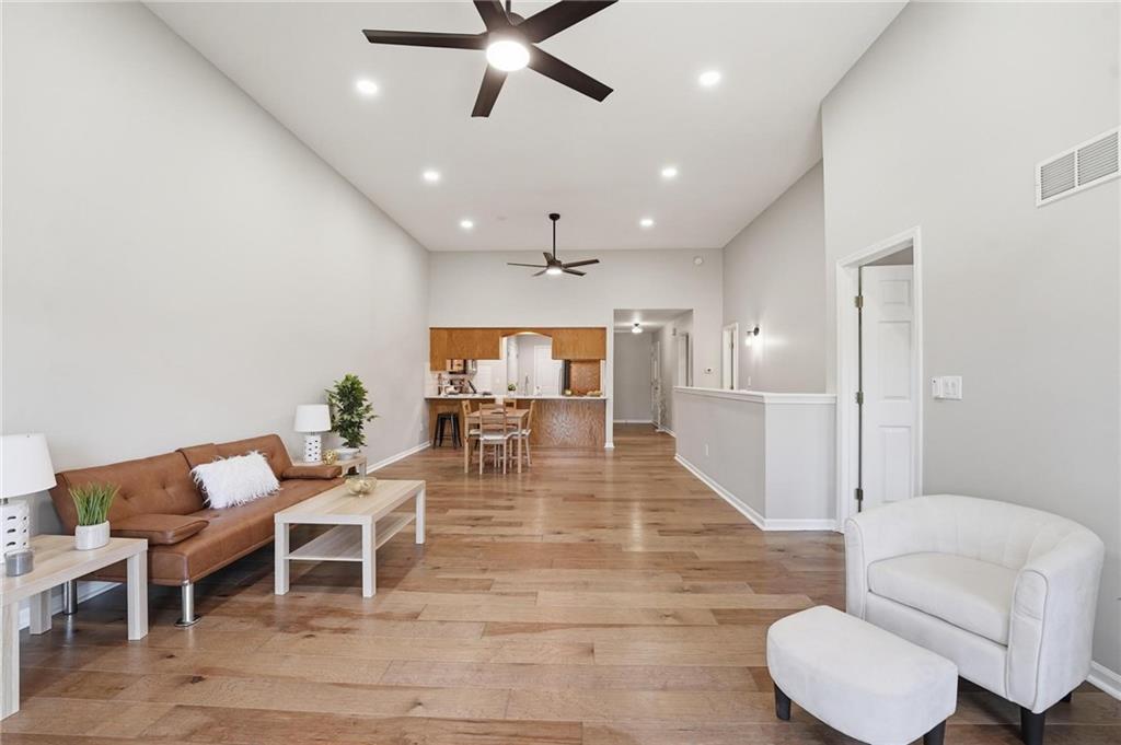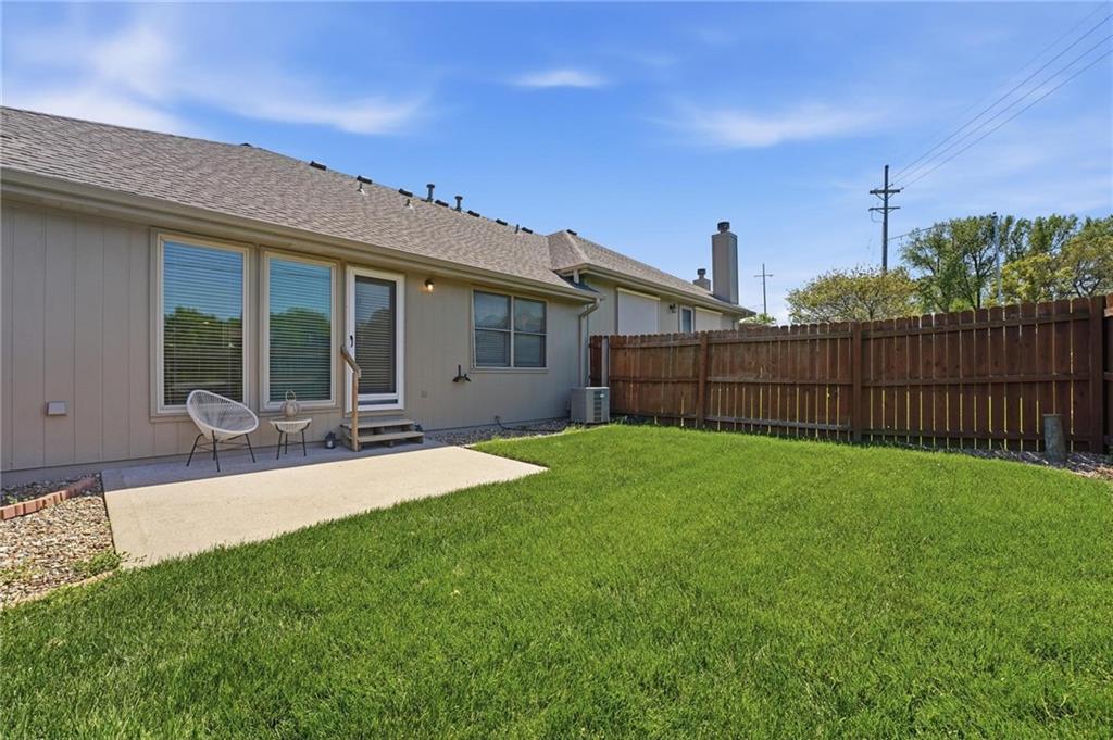 Experience effortless living in this beautifully remodeled ranch townhome featuring true main-level living, maintenance-provided convenience, and an ideal location. From the moment you enter, you’ll notice soaring vaulted ceilings, a bright airy feel, updated lighting with dimmer switches, stylish new flooring, and ceiling fans with remote controls for everyday comfort. Fresh neutral paint and thoughtful finishes make this home polished, welcoming, and move-in ready. The open-concept design creates an easy flow between the kitchen, dining, and living spaces—perfect for relaxing or entertaining. The kitchen offers quartz countertops, stainless/black appliances, and nearby main-level laundry for added convenience. The main floor includes two bedrooms and two full bathrooms, highlighted by a spacious primary suite with a quartz countertop, dual vanity, walk-in shower, and generous walk-in closet. The second main-level bathroom has also been tastefully updated, while all baths feature exquisite tile work and upscale finishes. The living room offers a striking yet comfortable atmosphere with a cozy fireplace and direct access to the private back patio and fenced yard. A convenient gate opens to additional green space beyond the fence. The finished lower level expands your living options with a large family room, a third full bathroom, and a non-conforming third bedroom—ideal for guests, office space, or hobbies. You’ll also love the oversized unfinished storage room with excellent potential for future finished square footage. Situated on a quiet cul-de-sac with a two-car garage, this home combines comfort and convenience in one exceptional package. Enjoy quick highway access with an easy commute to Kansas City International Airport, Downtown Kansas City, shopping, dining, and more—all within the desirable Staley High School attendance area.