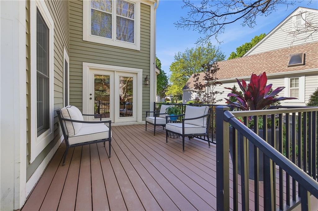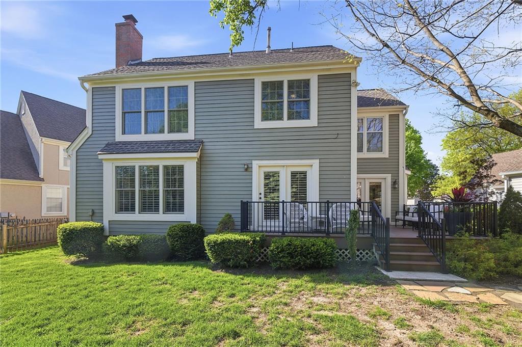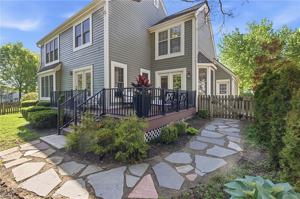 Welcome to your dream home in highly sought-after Leawood—rarely does a Nantucket-style charmer like this become available, especially with maintenance-provided living that includes lawn care and snow removal. Step inside to a bright, welcoming foyer that opens to a sun-filled living space with fireplace and hardwood floors throughout the main level. The oversized kitchen anchors the home, flowing effortlessly into spacious dining and living areas—ideal for hosting or everyday living. Just off the kitchen, a private Trex deck is tucked into lush landscaping with a charming stone path leading to the front, while the fully fenced yard offers both privacy and function. Upstairs features three bedrooms, including a primary suite with vaulted ceilings and en-suite bath. Floor-to-ceiling windows flood the home with natural light and showcase peaceful views. The unfinished lower level offers incredible potential to expand and build equity—create the space you need, exactly how you want it. Homes like this—at this price point, in this location, with this level of care—don’t come along often. Schedule your showing early.