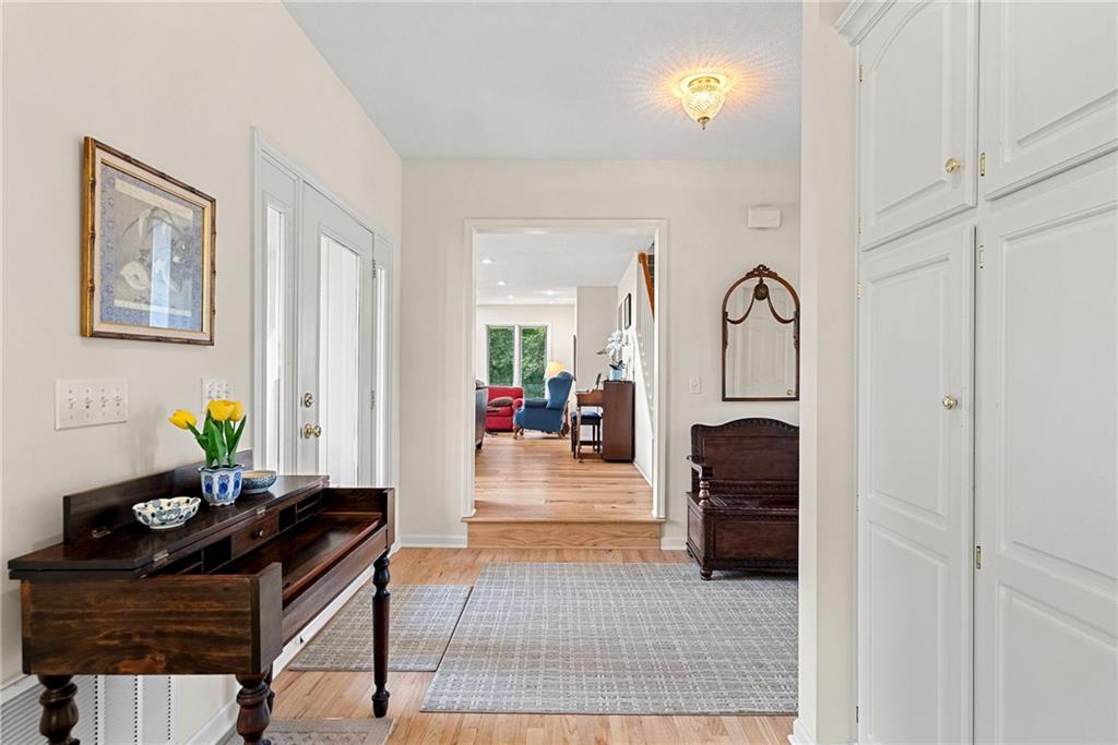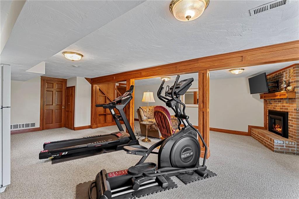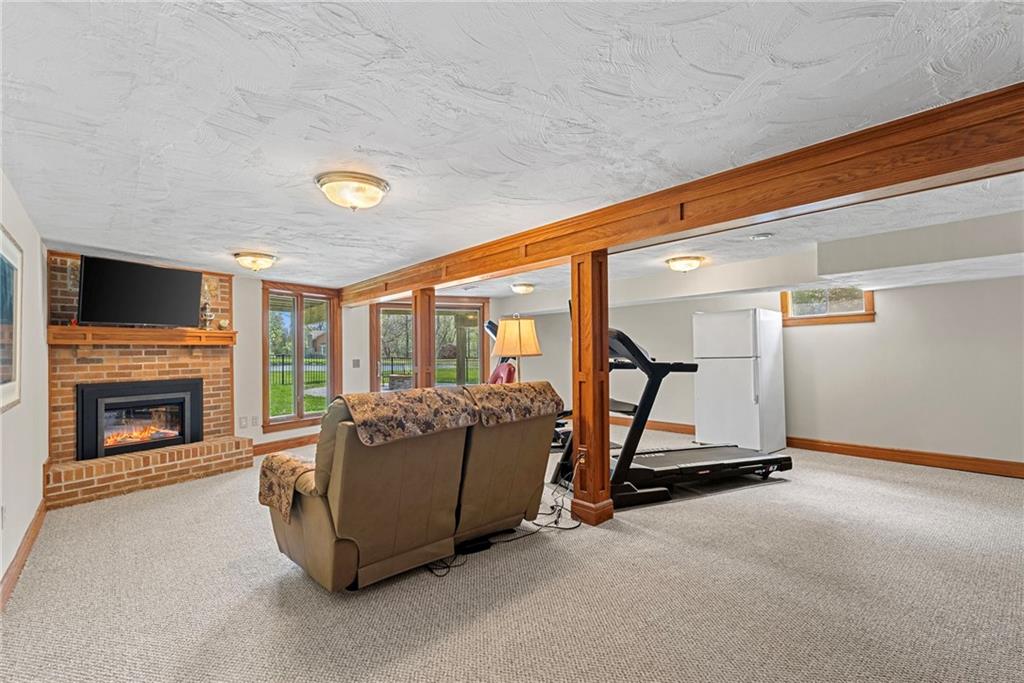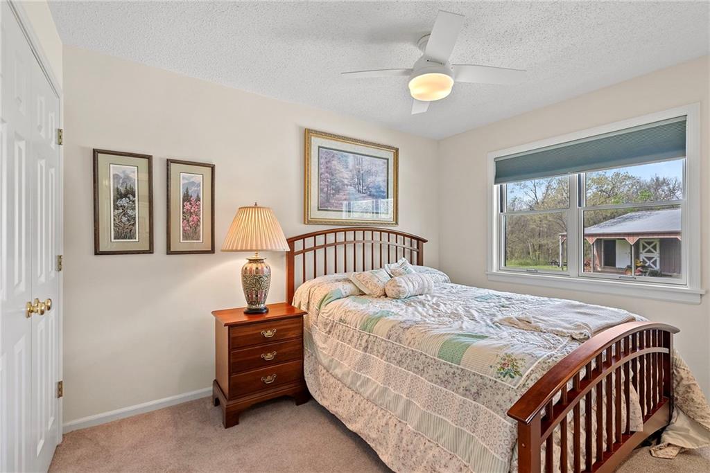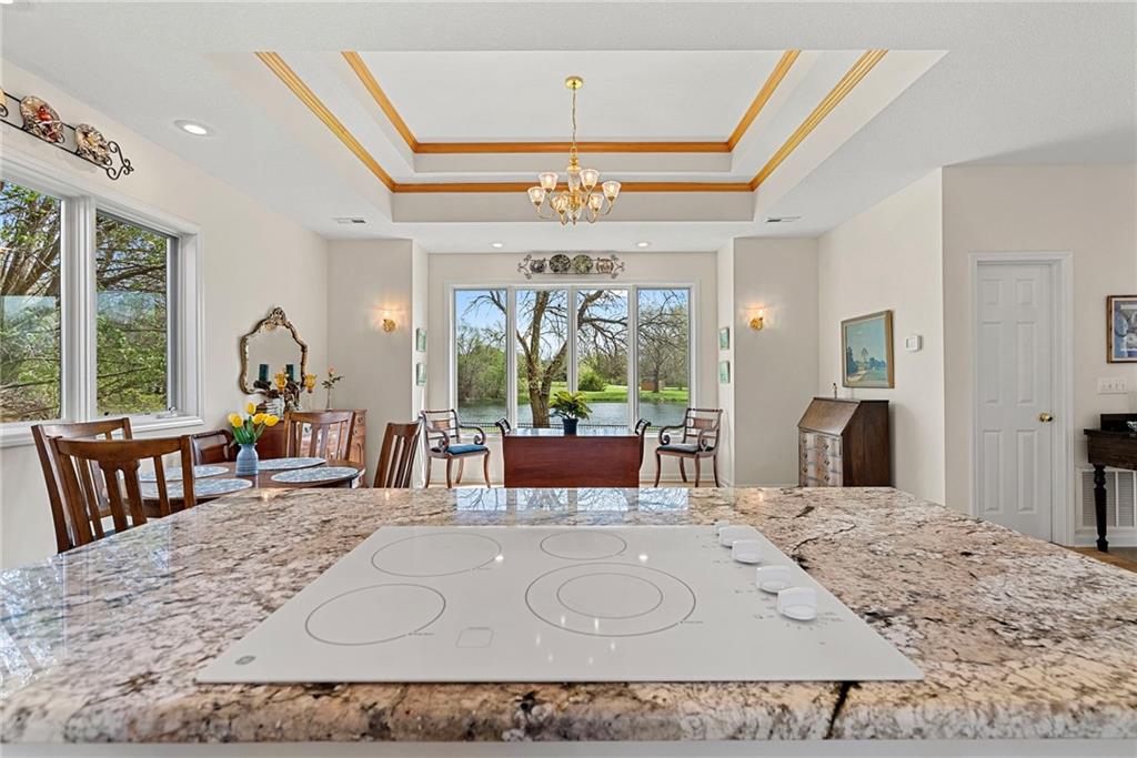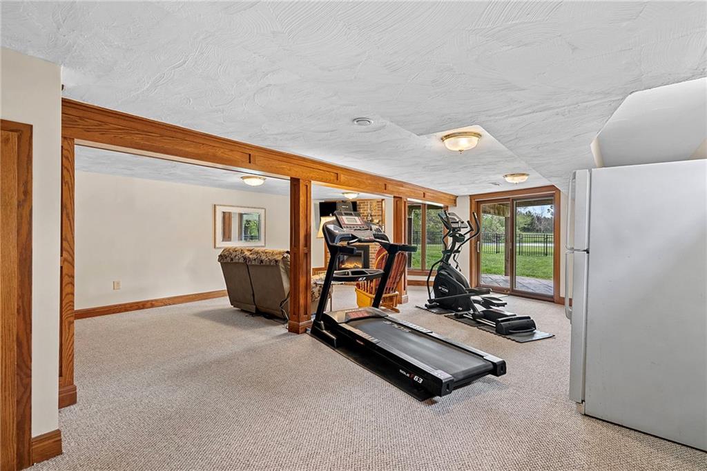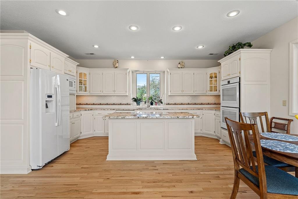 Discover a true private retreat in this one-of-a-kind A-frame estate, tucked away in a private 8-acre park-like setting just minutes from Hillsdale Lake. Designed to honor the land, this residence harmonizes rustic soul with modern functionality, offering a level of seclusion and beauty that is impossible to replicate. The heart of the home is the soaring, light-filled A-frame living area, where floor-to-ceiling windows frame incredible views of the pond and surrounding nature. This space is anchored by a majestic fireplace featuring a recently restored lifetime-warrantied flue system. The modern kitchen addition serves as a perfect bridge between the home’s original character and today’s needs, boasting custom cabinetry, double ovens, and 2021 granite surfaces. The upper level serves as a versatile getaway, featuring a full bathroom, a large bedroom, and a private landing that functions as a unique "balcony" office or nursery space. From this vantage point, you can work or relax while taking in the same expansive views from a higher perspective. For equestrian enthusiasts and hobbyists, the property features a riding arena expertly graded for drainage, an equestrian barn with 3 tongue-in-groove horse stalls, a tack room, and a shop area with reinforced concrete floors. The estate is further enhanced by a chicken coop, an aviary, and established black raspberry bushes. This meticulously maintained home offers peace of mind with a 2021 roof, dual HVAC systems under warranty, and most windows replaced in 2020-21. Located with incredible accessibility to the KC Metro, this is a rare opportunity to own a lifestyle of total privacy and architectural character without compromise.
