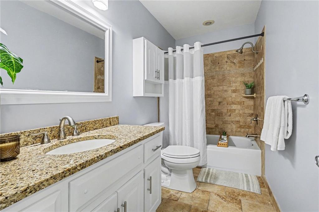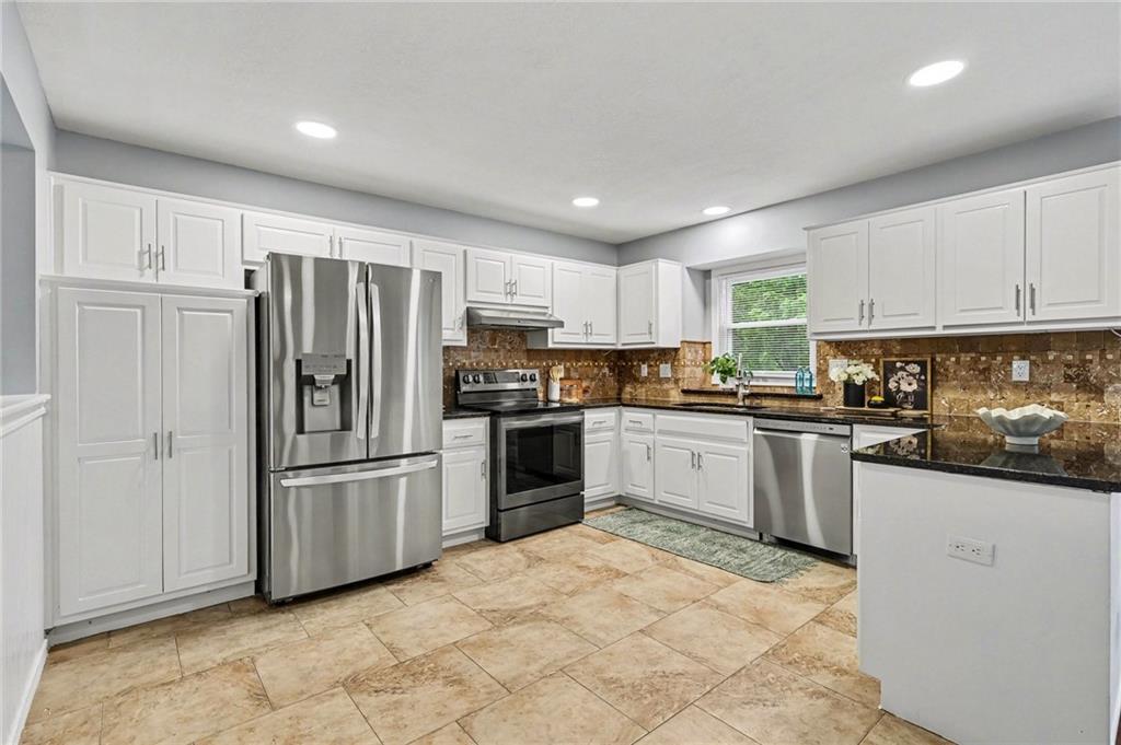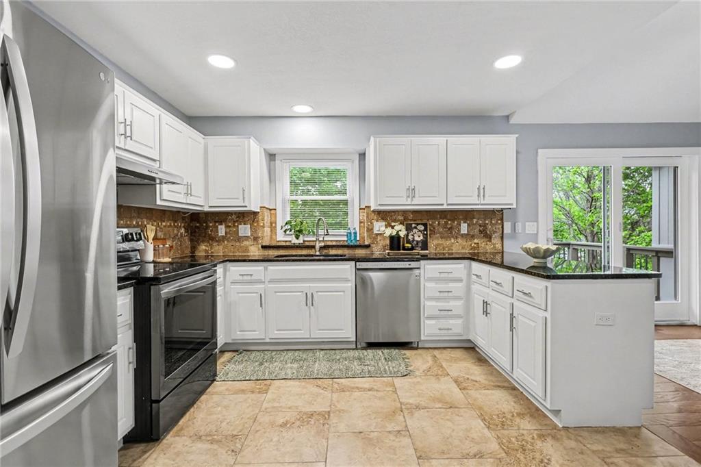 Beautifully updated 3-bedroom, 2.5-bath split-level home with spacious layout and large backyard! Step inside to a bright, open main living area featuring vaulted ceilings, abundant natural light, and a cozy fireplace. The updated kitchen offers white cabinetry, granite countertops, stainless steel appliances, and flows seamlessly into the dining area—perfect for everyday living and entertaining. The primary suite includes a private en-suite bath, while two additional bedrooms provide flexibility for guests, office space, or hobbies. The finished lower level offers a second living area, ideal for a family room, media space, or home gym. Enjoy outdoor living on the oversized deck overlooking a fully fenced backyard with mature trees—perfect for relaxing or hosting gatherings. Additional features include a 2-car garage, neutral paint throughout, and move-in-ready condition. Conveniently located near shopping, dining, and major highways, this home offers both comfort and accessibility. Don’t miss this one!