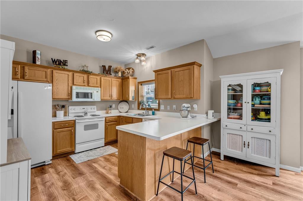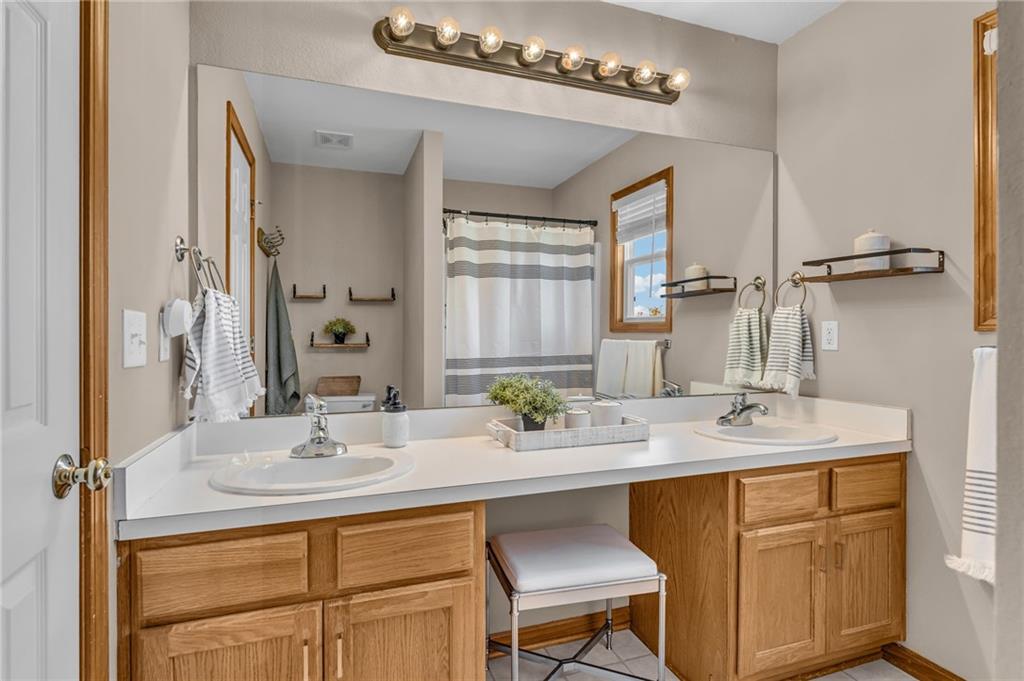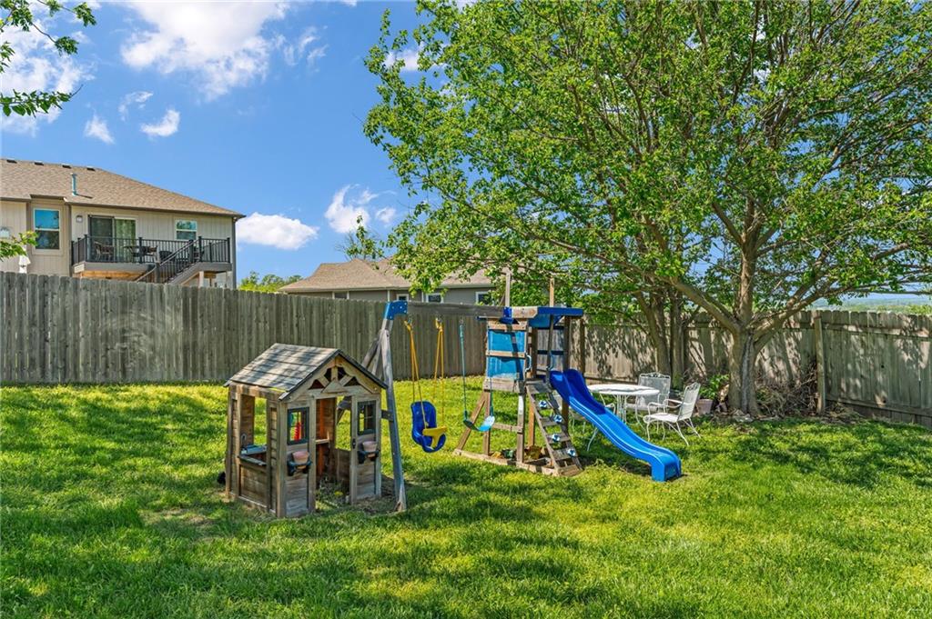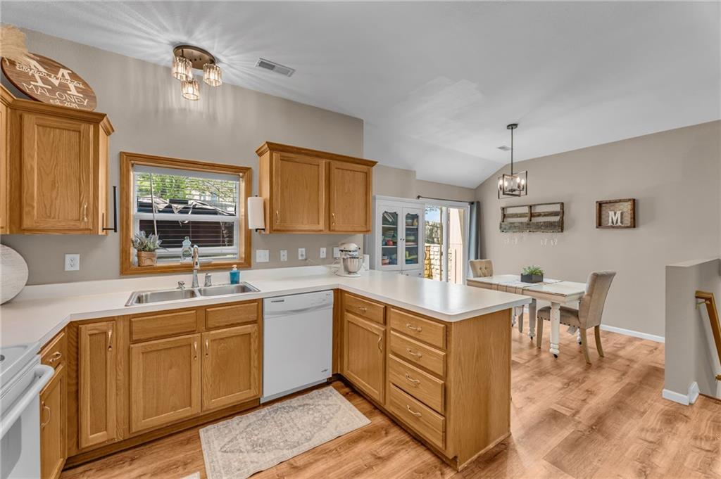 Welcome to this charming 4BR/3BA home in west Lawrence, an easy stroll from Stonegate Park. Comfortable and clean with new lighting fixtures throughout and some new paint, this practical layout features a kitchen (all appliances stay) open to a nice dining space and a lovely living room with vaulted ceilings and wood-burning fireplace to gather around. The primary bedroom has double closets and a great ensuite bathroom with double vanity, while a 4th bedroom in the basement would also make a perfect office, playroom or flex space. Lots of room to roam or relax around the firepit in the deep fenced backyard. Newer HVAC for years of peace of mind ahead. Deerfield/West/Free State schools. Lets go!
