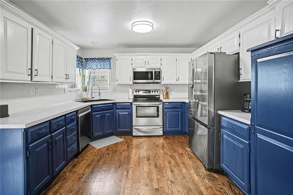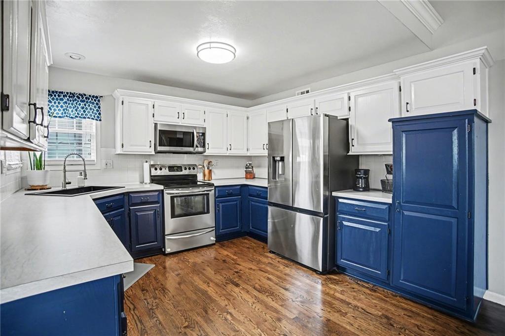 The signature atrium split floor plan is the star of this home, offering distinct levels of living space that provide privacy, flexibility, and a layout that truly works for every stage of life. Rich darkwood flooring flows throughout the home, and the main living room is spacious and inviting. The kitchen delivers a bold personality of painted cabinets, new countertops, stainless steel appliances, and a deep corner sink. Upstairs, the spacious master suite offers a walk-in closet, a large vanity, and a shower. The other two bedrooms are roomy and full of character. The lower level adds another level with a fully finished farmhouse-inspired retreat. Enjoy a custom wet bar featuring granite countertops, shaker cabinets, tile backsplash, and pendant lighting. A perfect hangout area, game room, or guest space. The covered deck and large fenced-in back yard are perfect for those evenings when you want to relax. You will find plenty of storage in the sub-basement to tuck away all those items you don't need immediately. Leave your worries behind with a new roof, newer mechanicals, stainless steel appliances, and a water softener. This home is packed, polished, and ready to welcome its next chapter; all that's missing is you.