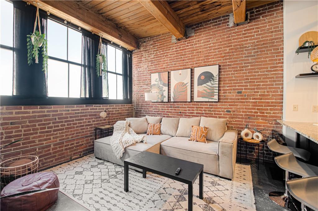Come see this beautiful, fully furnished downtown condo! It doesn't get any easier! Located close to bars, restaurants and highways-only a few blocks to the free streetcar and just steps from the River Market area. A fantastic dog park is right up the street and e-bike rentals/Bike Share KC is right at your doorstep. This 1 bedroom, 1 bathroom condo is in a very quiet hallway; it's close to everything, but still located in a quiet area. It has been wonderfully updated and boasts beautiful polished concrete floors, granite counter tops, plenty of exposed brick and natural wood beams, lots of natural light, high ceilings, and being on the 5th floor, a fantastic view of the downtown airport, the Missouri River and beautiful sunsets. All stainless steel appliances stay, as well as the washer & dryer(LG). Included in the sale are the furniture and furnishings that is everything anyone could ever need to call this home! A wonderful sectional couch, bed, barstools, all shelves, shelving units, dresser, desk, 2 large screen TVs, even pots, pans, plates, glasses and silverware! (**Please note that the Kitchen Aid standing mixer does not stay**)Extra storage in the basement comes with the unit. Gated parking is available right next to the building; above ground $85/month & covered parking below is $110/month. Amenities include water, a wonderful fitness room, theater room, club house and sauna, building maintenance, trash pick up, snow removal, etc. A relatively low monthly HOA Fee for all of this is more than worth it! Whether you're a first-time home buyer, or a couple or single that just wants a place to enjoy downtown living, this place is perfect. Don't wait-schedule a tour today!