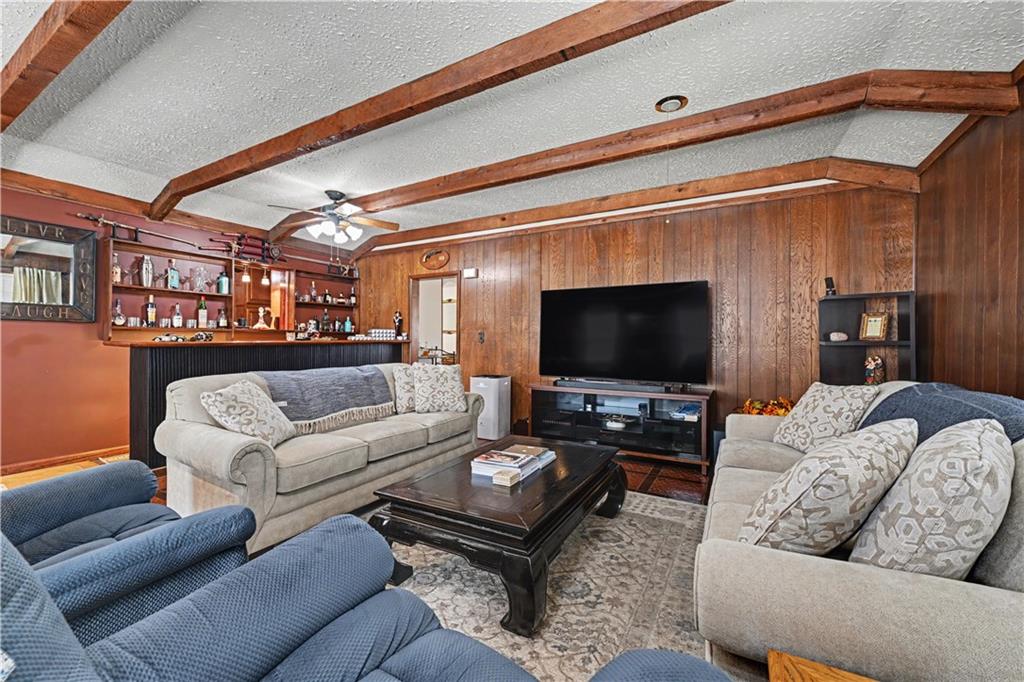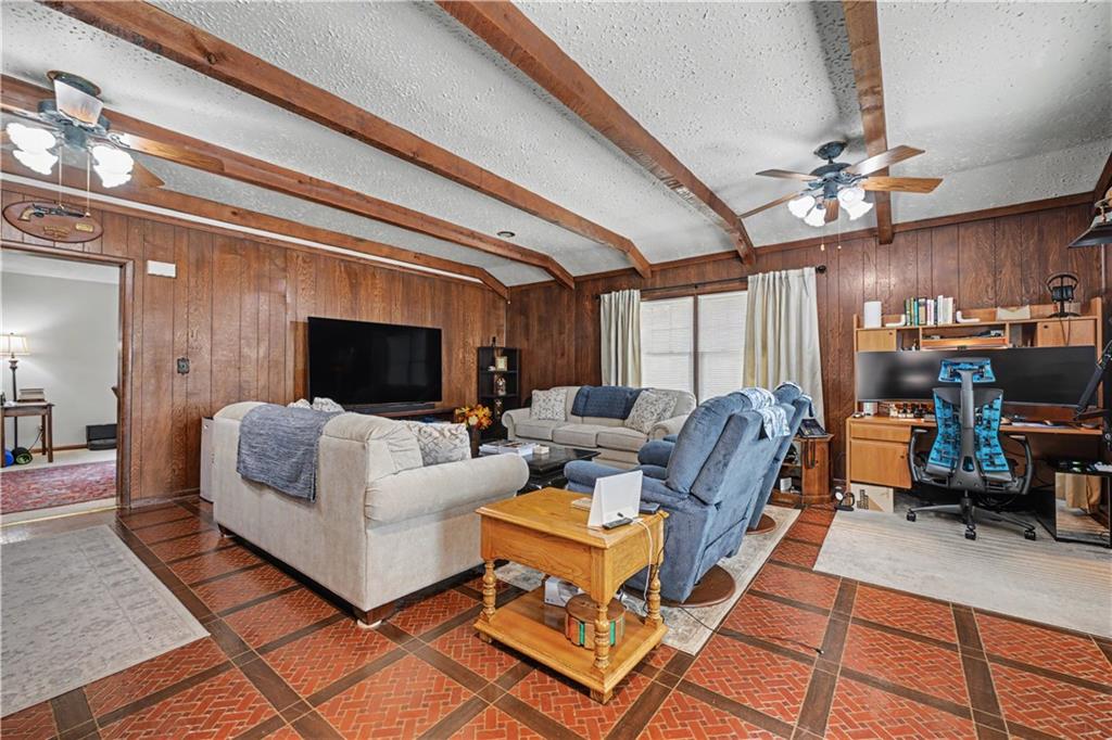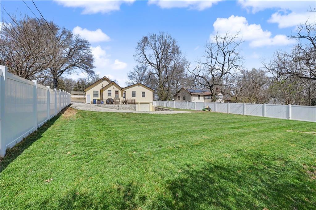 Well-maintained ranch-style home with a comfortable and functional layout. Formal living room greets friends and family with a classic brick fireplace and wall of windows. Freshly updated kitchen includes newer cabinetry, countertops, stainless steel appliances, and a gas range—perfect for everyday living and casual entertaining. Dining room off kitchen with china cabinet and newer chandelier. The expansive family room provides additional living space with a large bar area—ideal for gatherings, game days, or relaxing evenings at home. Outside, enjoy a generously sized yard with huge patio and circular driveway and rear-entry two-car garage, offering both convenience and ample parking. Basement has been freshly painted following the addition of support beams in 2026, providing peace of mind and added usability. Located near 95th and Holmes, you’ll have quick access to the shops and restaurants of Brookside, Waldo, and the Plaza, along with easy highway connections for commuting anywhere in the city. Close proximity to local schools and Indian Creek Trail adds to the home’s everyday appeal.