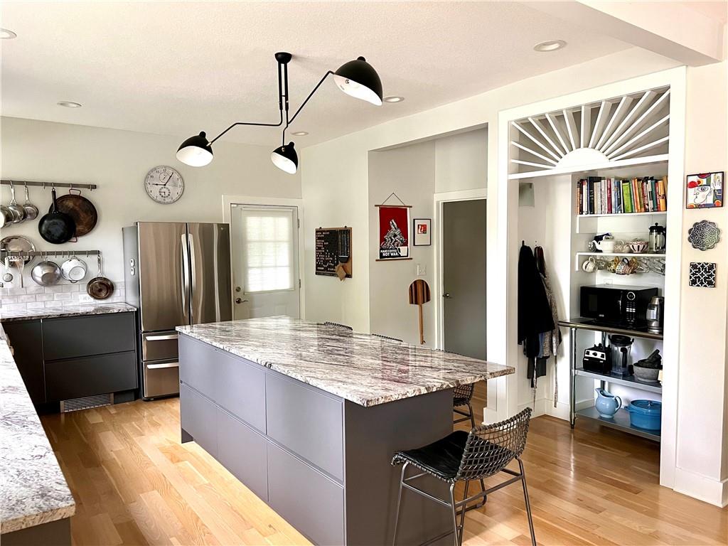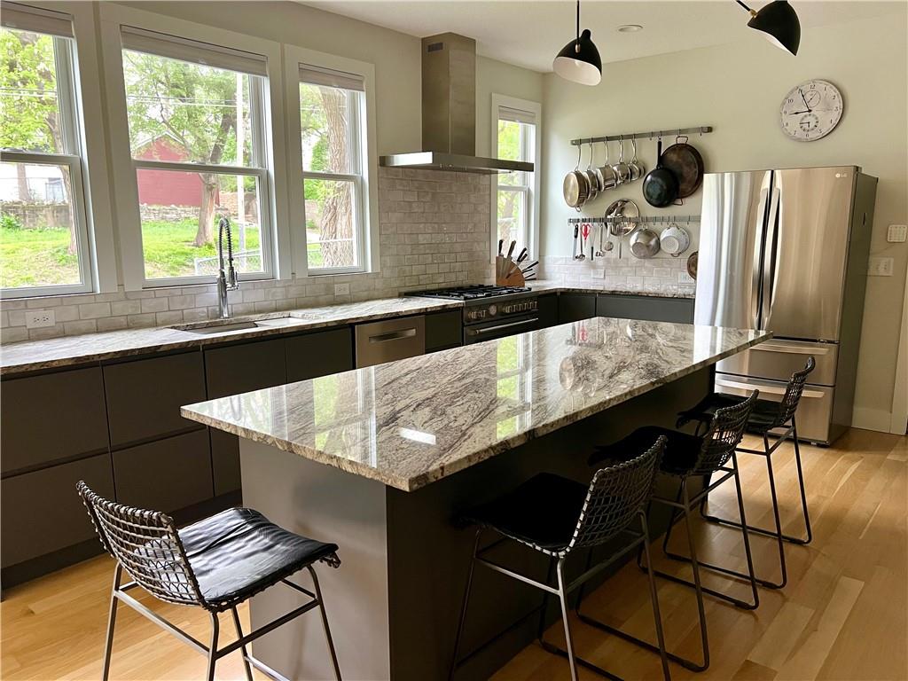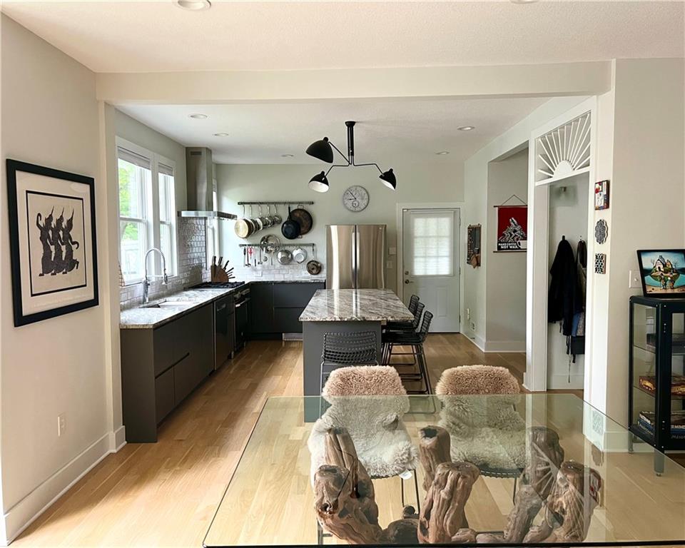 Move-in ready! This rare find in the Historic Northeast features • Gourmet kitchen • Five bedrooms • Three baths with custom tilework • Hardwood flooring - no carpet! • Fully fenced corner lot • Lots of living space inside and out. The welcoming wraparound porch offers multiple seating areas so you can follow sun and shade throughout the day. Inside, the stunning kitchen was designed for those who love to cook and entertain. Flooded in natural light, it showcases stainless steel appliances -- including a six-burner stove -- granite countertops, white oak hardwood flooring, and an eight-foot island. The open plan encompasses living room and dining area, ideal for large gatherings. A generously sized pantry / laundry room adjoins the kitchen. The main floor also includes a bedroom or office and a ¾ bath with walk-in shower. The back entrance mudroom offers plenty of storage. Upstairs a spacious primary bedroom includes two closets and an ensuite bathroom with double vanity. The three additional second-floor bedrooms feature vaulted ceilings; one includes a loft for storage or a potential play or hobby area. A third bathroom offers a walk-in shower. Off the second floor is a large wraparound deck. The back yard features off-street, secured parking and a large workshop / shed with 100-amp service. The property also includes a large basement, back patio area for grilling, and an additional secured storage area, which is part of the main house. The generously sized corner lot is naturalized with native species for low maintenance beauty. Schedule your showing today! Owner agent.