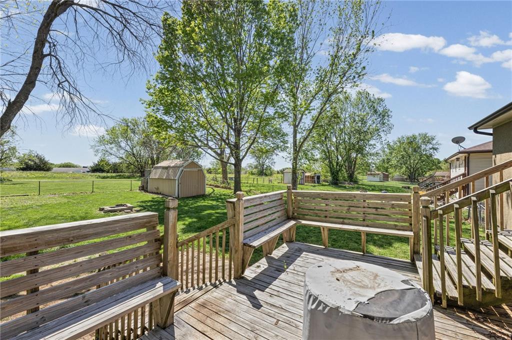 Welcome to this charming home nestled in the heart of Louisburg! Situated on a spacious lot, this well maintained 3 bedroom, 2 bath property offers the perfect blend of comfort, functionality, and small-town charm. Step inside to discover a bright and inviting living area filled with natural light, ideal for both relaxing evenings and entertaining guests. The kitchen features ample cabinet space and a convenient layout, making meal prep a breeze, while the adjoining dining area provides a cozy space for gatherings. Generous bedrooms offer comfortable retreats, and the home’s thoughtful floor plan ensures both privacy and practicality. The finished basement adds valuable living space—perfect for a family room, home office, gym, or guest area giving you flexibility to fit your lifestyle. Step outside to enjoy the large deck, ideal for entertaining, grilling, or simply relaxing while overlooking the yard. The property also includes a dedicated storage building, providing excellent space for tools, equipment, or seasonal items. The expansive yard offers plenty of room for outdoor activities, gardening, or creating your own backyard oasis. Located just minutes from local schools, parks, and downtown Louisburg amenities, this home combines quiet neighborhood living with easy access to everything you need.