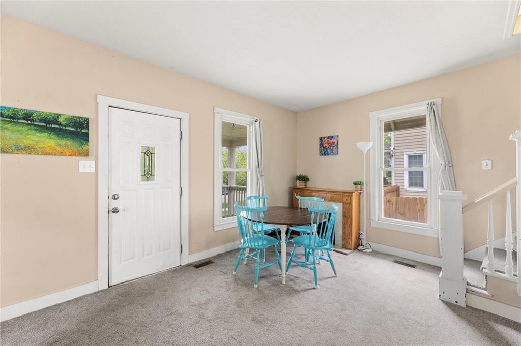 Nestled in a prime location just a short stroll from the charm of the historic Paola square, this adorable two-bedroom, two-bathroom home offers a perfect blend of modern convenience and classic appeal. The main level welcomes you with an expansive family room that flows effortlessly into an open concept kitchen and dining area with loads of cabinets and all appliances staying, creating an ideal layout for both daily living and effortless entertaining. Main level bathroom features a huge, tiled shower. Upstairs, you will find two generously sized bedrooms and a second full bathroom, providing a private and comfortable retreat. Car enthusiasts or those seeking extra storage will appreciate the wonderful, newer two-car attached garage that adds significant value to the property. The home's exterior has been meticulously maintained, featuring a comprehensive refresh in 2020 that included scraping and repainting the siding along with the installation of new gutters, newer windows 2022 and central heat and air. Beyond the walls, a lovely yard awaits, offering the perfect backdrop for summer barbecues and outdoor relaxation. This move-in-ready gem combines a fantastic layout with a sought-after neighborhood setting; don't miss your chance to own a piece of Paola history, as a home this well-cared-for truly won't last long on the market.