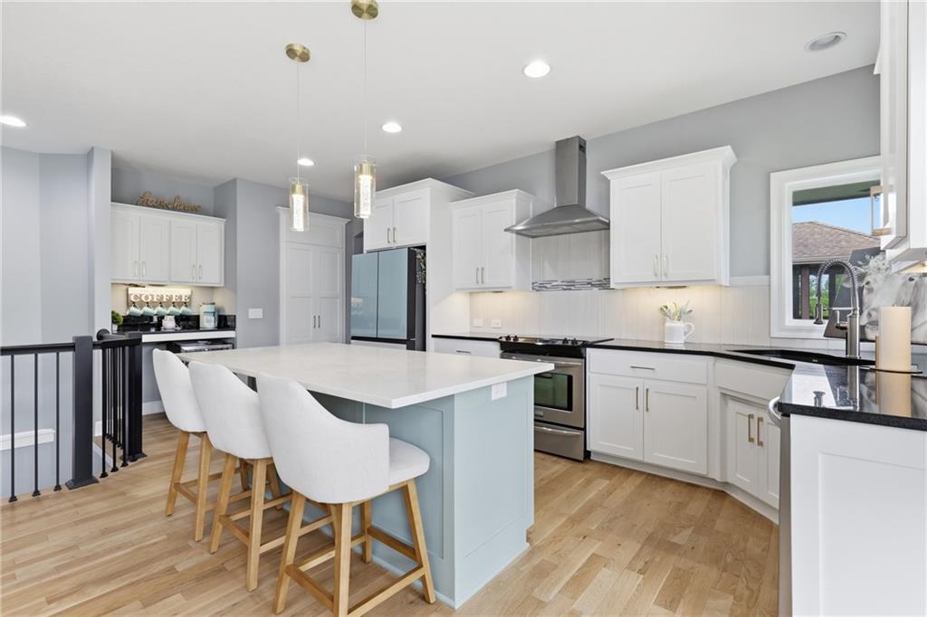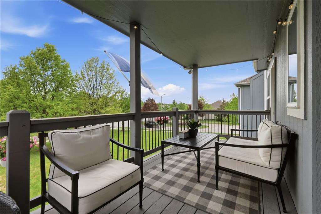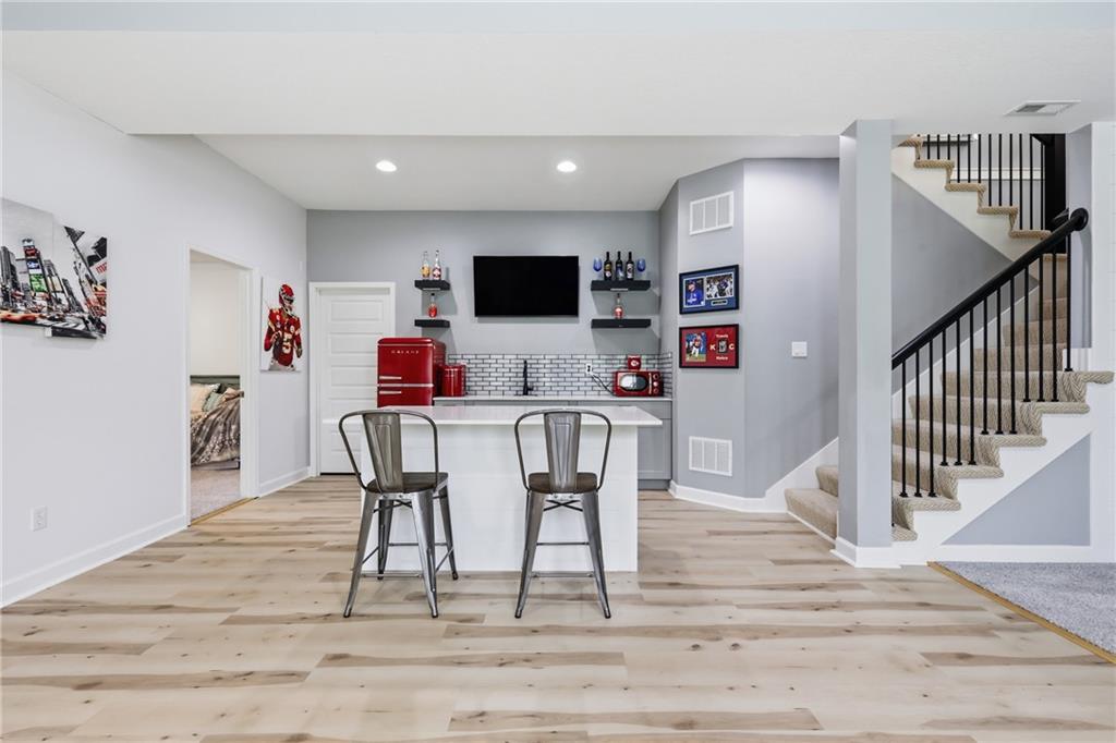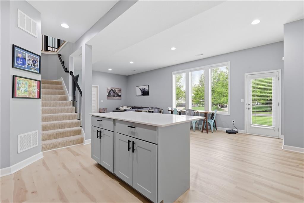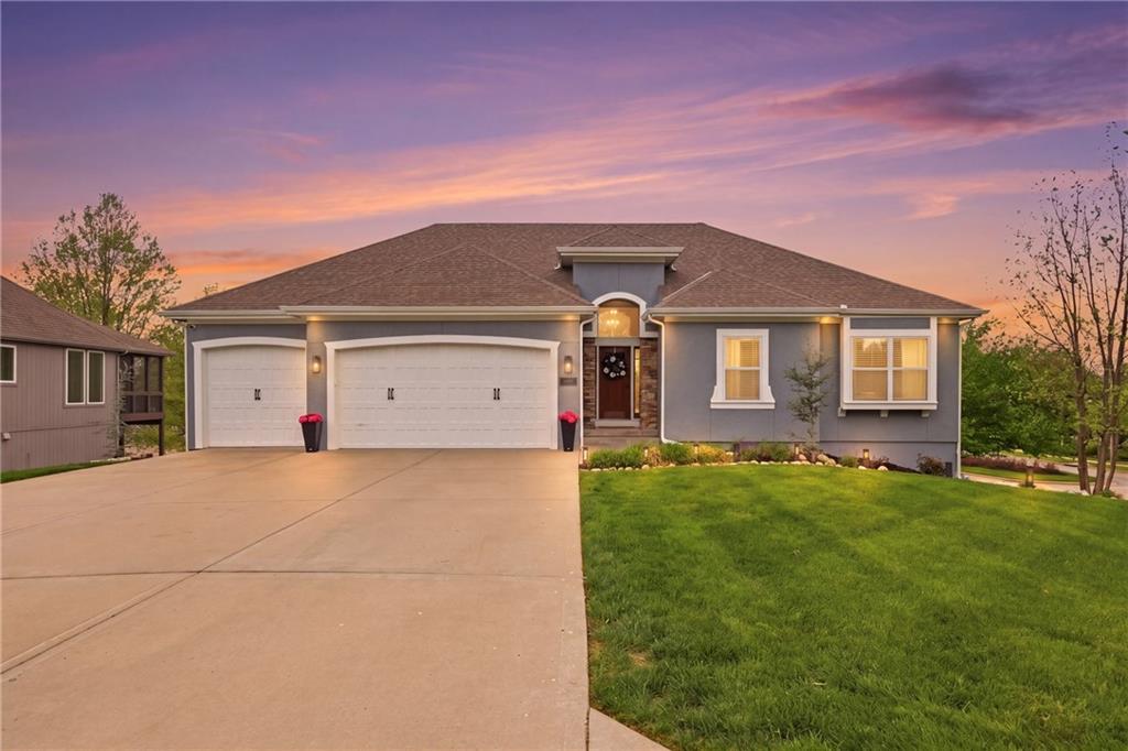 Welcome to this beautifully updated 5 bedroom, 4.1 bath home in the highly sought-after Staley Farms subdivision! With over 3,300 square feet, this home offers the perfect blend of space, functionality, and modern updates. Step inside to soaring 12-foot ceilings in the main living area, highlighted by a stunning floor-to-ceiling fireplace with brand new stone. The home features a new front door, fresh landscaping, updated lighting throughout, newer exterior paint, and select interior updates—making it truly move-in ready. The main level is ideal for multi-generational living, offering 3 bedrooms and 2.1 bathrooms. The spacious primary suite includes a luxurious ensuite with a large walk-in shower featuring dual shower heads and a walk-in closet. A freshly remodeled full bathroom adds even more value to the main floor. The kitchen is filled with natural light and flows seamlessly to the L-shaped covered deck, complete with a TV mount and party lighting—perfect for entertaining. Convenient main-level laundry and a 3-car garage add everyday ease. Downstairs, the finished basement offers incredible flexibility with 2 additional bedrooms, 2 bathrooms, a newly added kitchenette with sink and island, and ample storage space. You’ll also find a 4th garage ideal for a golf cart and a built-in reinforced safe room for safe keeping of your valueables or added peace of mind during storms. The back patio is ready for relaxation with a hot tub hookup already in place. Enjoy resort-style living in Staley Farms with neighborhood amenities that include a pool, pickleball and tennis courts, playground, clubhouse with gym and showers, basketball court, sand volleyball, and even a neighborhood restaurant. This home truly has it all—space, updates, and unbeatable amenities in one of Kansas City’s premier communities!
