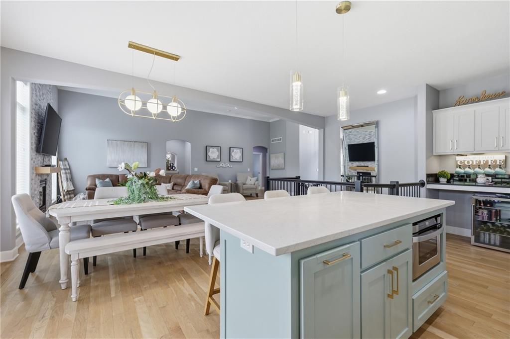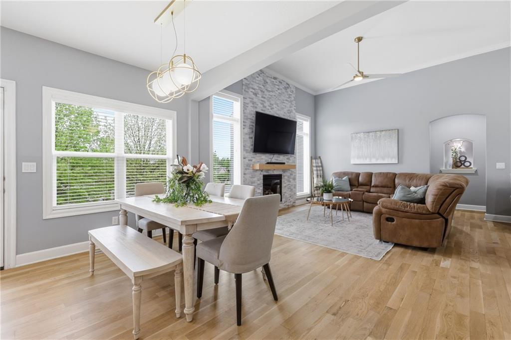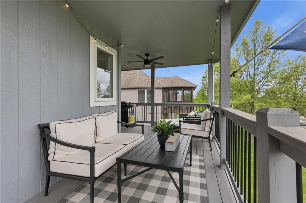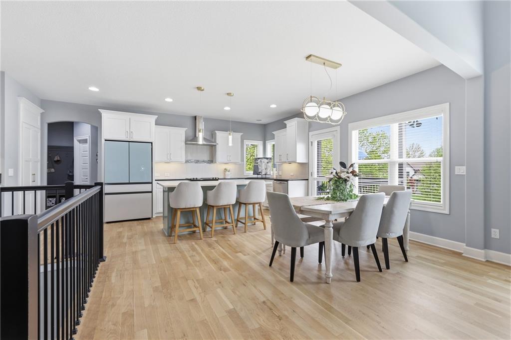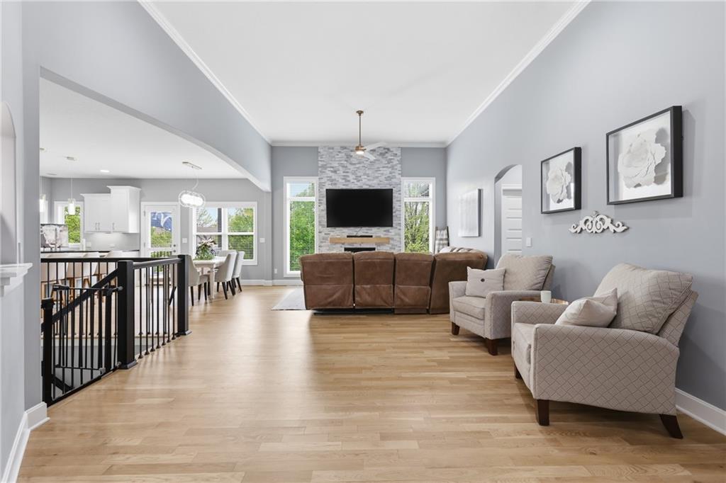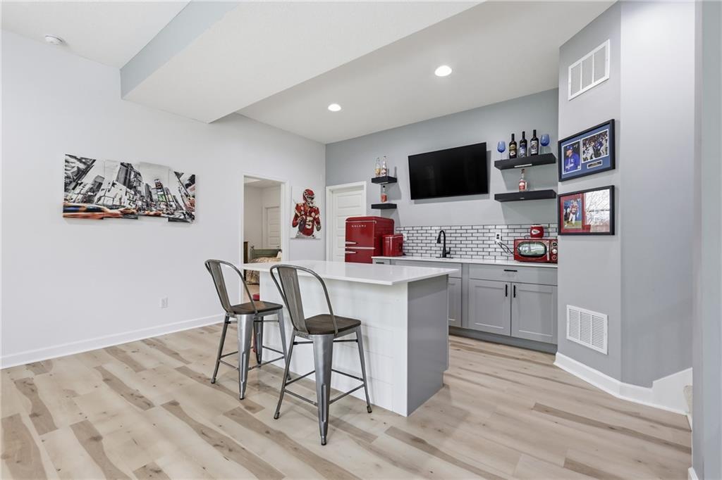 Welcome to this beautifully updated 5 bedroom, 4.1 bath home in the highly sought-after Staley Farms subdivision! With over 3,300 square feet, this home offers the perfect blend of space, functionality, and modern updates. Step inside to soaring 12-foot ceilings in the main living area, highlighted by a stunning floor-to-ceiling fireplace with brand new stone. The home features a new front door, fresh landscaping, updated lighting throughout, newer exterior paint, and select interior updates—making it truly move-in ready. The main level is ideal for multi-generational living, offering 3 bedrooms and 2.1 bathrooms. The spacious primary suite includes a luxurious ensuite with a large walk-in shower featuring dual shower heads and a walk-in closet. A freshly remodeled full bathroom adds even more value to the main floor. The kitchen is filled with natural light and flows seamlessly to the L-shaped covered deck, complete with a TV mount and party lighting—perfect for entertaining. Convenient main-level laundry and a 3-car garage add everyday ease. Downstairs, the finished basement offers incredible flexibility with 2 additional bedrooms, 2 bathrooms, a newly added kitchenette with sink and island, and ample storage space. You’ll also find a 4th garage ideal for a golf cart and a built-in reinforced safe room for safe keeping of your valueables or added peace of mind during storms. The back patio is ready for relaxation with a hot tub hookup already in place. Enjoy resort-style living in Staley Farms with neighborhood amenities that include a pool, pickleball and tennis courts, playground, clubhouse with gym and showers, basketball court, sand volleyball, and even a neighborhood restaurant. This home truly has it all—space, updates, and unbeatable amenities in one of Kansas City’s premier communities!