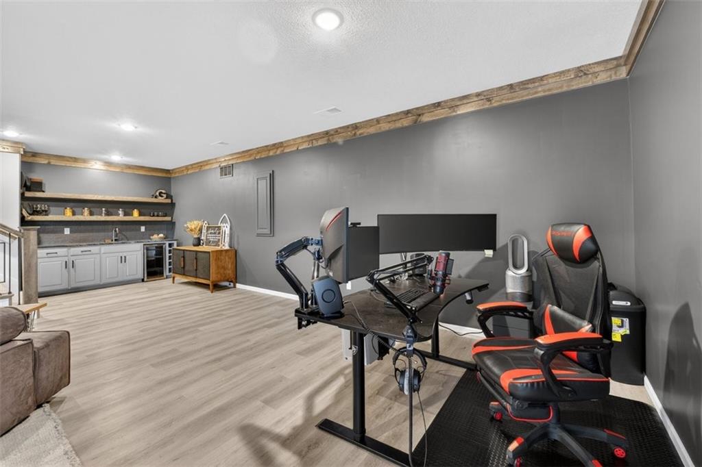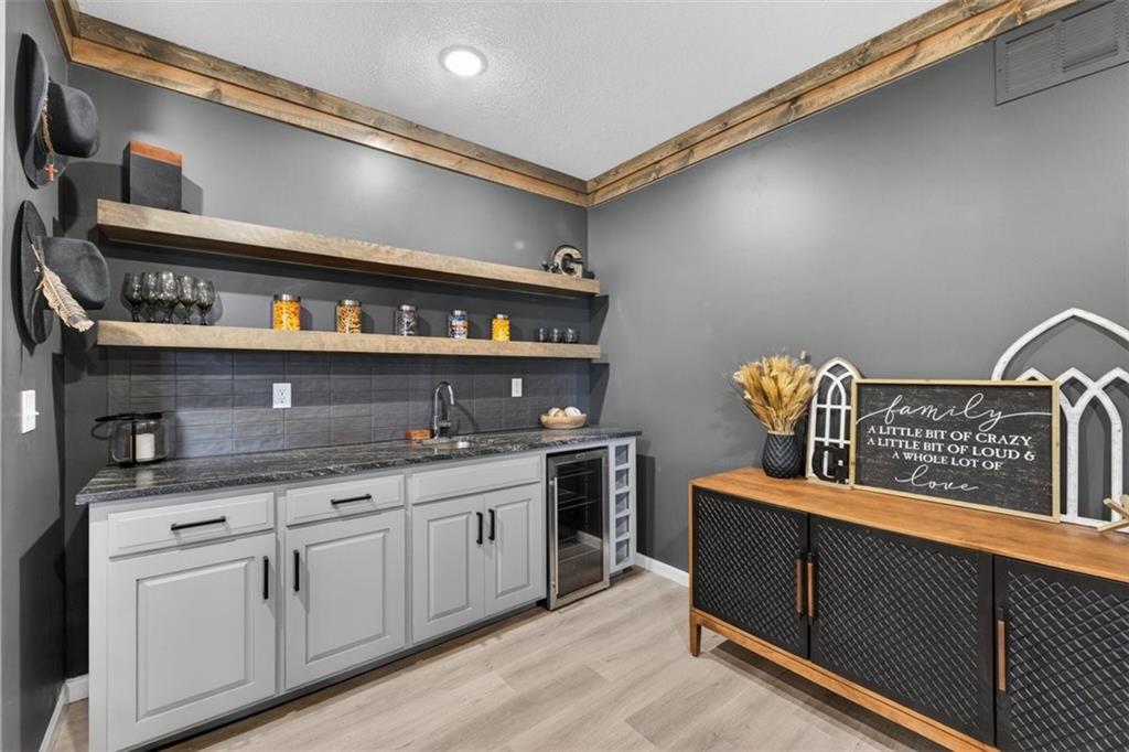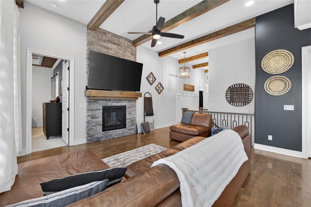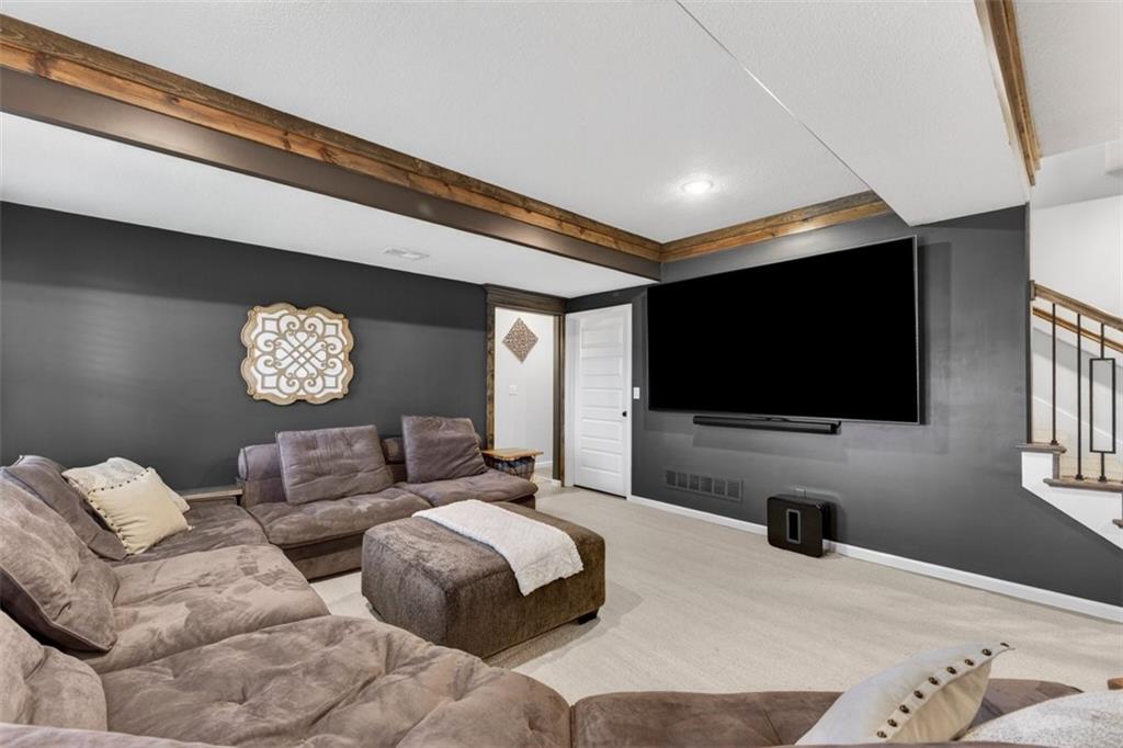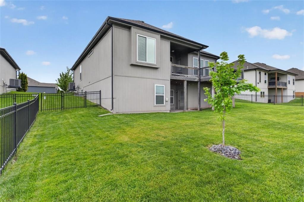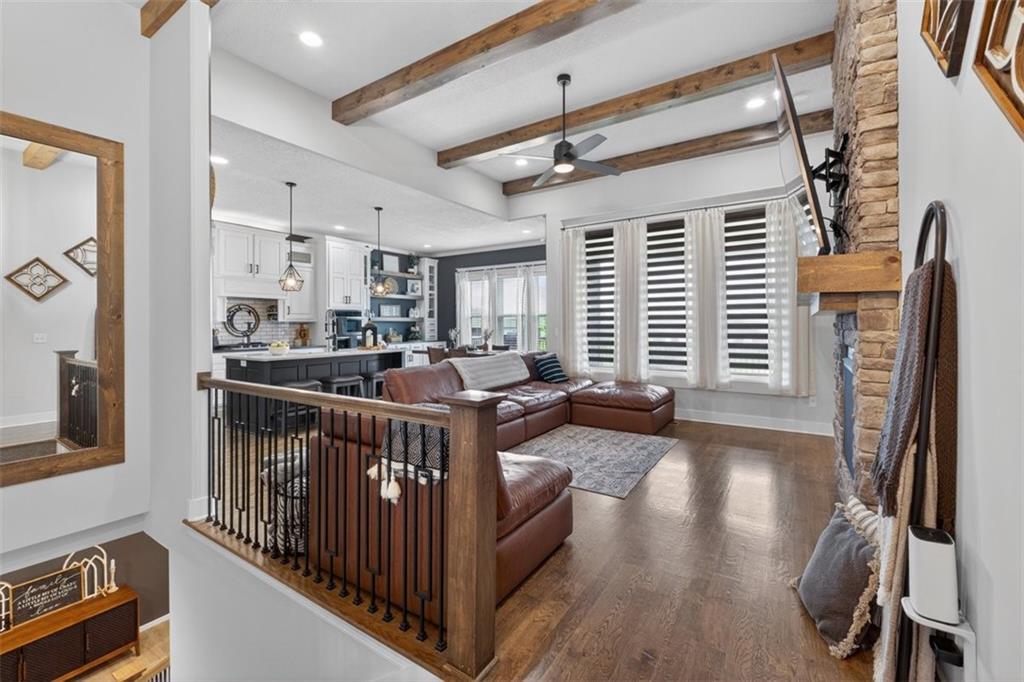 Welcome to this stunning Trumark Reverse 1.5-story home in the highly desirable Eagles Ridge community of Lee’s Summit! This beautifully designed 5-bedroom, 3-bath residence offers the perfect blend of style, comfort, and functionality. Step inside to an inviting open-concept layout featuring soaring ceilings accented with gorgeous wood beams, creating a warm yet spacious atmosphere ideal for both everyday living and entertaining. The main level boasts three generously sized bedrooms, including a serene primary suite, while the finished walk-out basement offers two additional bedrooms and a full bath—perfect for guests, a home office, or multi-generational living. Enjoy the many upgrades throughout the home, along with seamless indoor-outdoor living. Step out onto the large deck, partially covered for year-round enjoyment, overlooking a peaceful setting that’s perfect for relaxing or hosting gatherings. With its thoughtful layout, high-end finishes, and move-in ready condition, this home truly has it all. Don’t miss your opportunity to own a beautiful property in one of Lee’s Summit’s most sought-after neighborhoods!