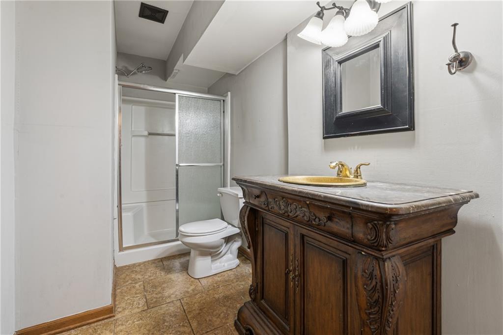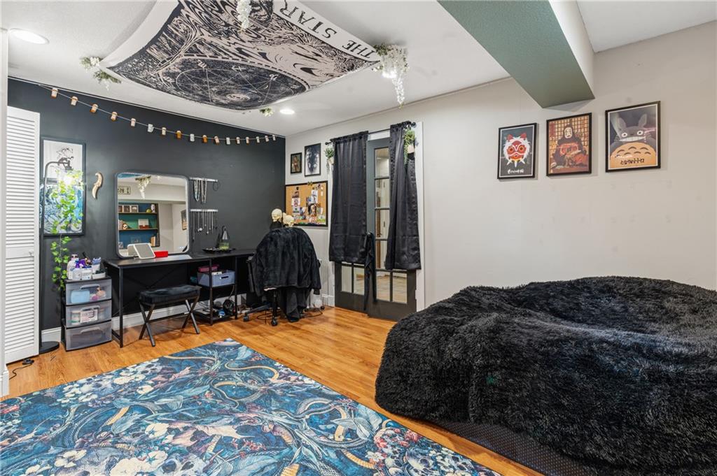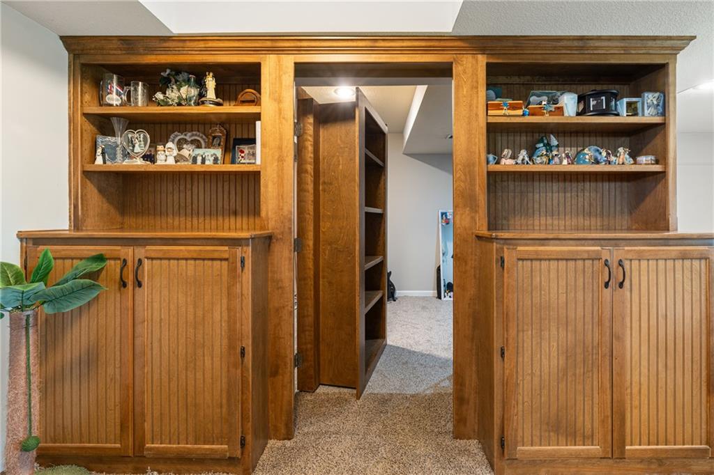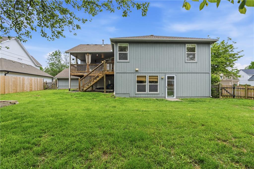 Prepare to be captivated by this stunning split-level home in the highly sought-after Eagle Creek community! The main level boasts a bright, open-concept floor plan with vaulted ceilings, seamlessly connecting the spacious living area to a modern kitchen featuring granite countertops and a large center island. Retreat to the primary suite, which offers a private oasis complete with a walk-in closet and a luxurious ensuite featuring a whirlpool tub. Two additional bedrooms and a second full bath round out the main floor. The lower level is a true showstopper, offering a secondary living space, a 4th bedroom, and a third full bathroom. The "hidden gem" of this home is a secret door leading to an additional game room—the perfect footprint for a private home speakeasy, media room, or secluded office. Step outside to the covered deck overlooking a large, fully fenced backyard, ideal for entertaining. This home combines functional family living with unique custom character you won't find anywhere else. Conveniently located near neighborhood pools, trails, and top-rated Lee's Summit schools!