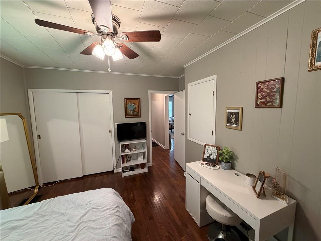 Welcome to this beautifully maintained and move-in-ready property. From the moment you pull up, you’ll be greeted by a charming front porch—the ideal spot for your morning coffee or relaxing in the evening. Step inside to find a bright and functional 1,151-square-foot layout featuring stunning hardwood floors and durable tile finishes. The home is designed with efficiency in mind, offering exceptional built-in storage units in both the bedrooms and the hallway to keep your living space organized and clutter-free. The exterior of this property stands out, offering both versatility and security. Updated roof and gutters, ensuring the home is protected for years to come. The property includes a fully fenced-in backyard for privacy and a large extra side lot that provides incredible potential for gardening, outdoor entertaining, or future projects. Additionally, the detached two-car garage with convenient alley access offers ample room for vehicles, a workshop, or extra storage. Whether you are looking for a charming primary residence or a solid addition to your portfolio, this home’s combination of updated mechanicals and timeless appeal makes it a must-see.