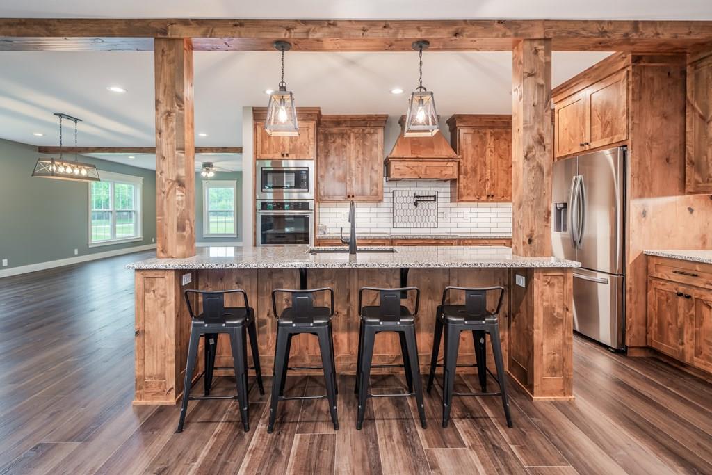 Discover this impeccably renovated 3,400 sq ft Craftsman home situated on 1.6 acres. While this home is nearly 100 years old the only original feature is the skeleton, yet it retains its timeless charm. From the outside, the home welcomes you with a beautifully crafted brick sidewalk leading to an expansive and inviting living space on the main level. The flooring in the living spaces are a stone polymer composite flooring, which is waterproof and more durable. This area seamlessly integrates the living room, dining area, and a state-of-the-art kitchen. The kitchen is a true centerpiece, boasting beautiful Knotty Alder Amish cabinets, granite countertops, and stainless steel appliances, along with countless exquisite details and upgrades. Beyond the kitchen is a large Mud Room and Bathroom. Also on the main level is the luxurious primary bedroom, complete with a private bathroom that includes a tiled shower and beautiful soaker tub. Walk past the bathroom into a spacious walk-in closet. Venture to the upper level to find three generously sized bedrooms, each with large closets. There is also a bathroom on the upper level as well. One of the home's unique features is a secret room, perfect for storage or as a magical space for little ones. Every aspect of this home has been completely updated, including the sewer system, electrical, HVAC, roof, and Low-E windows. As an added bonus, the seller is offering a $4,000 fence allowance.